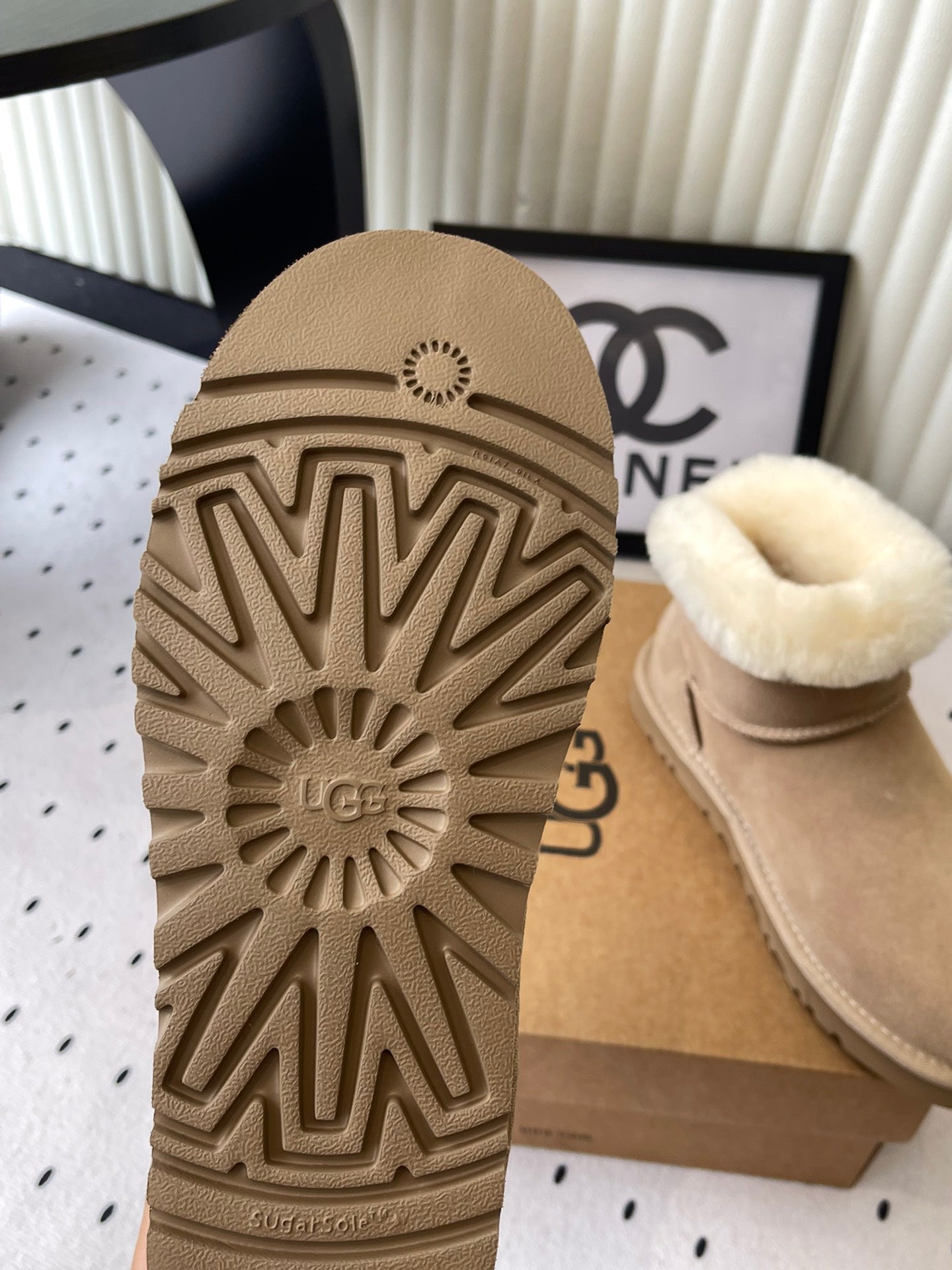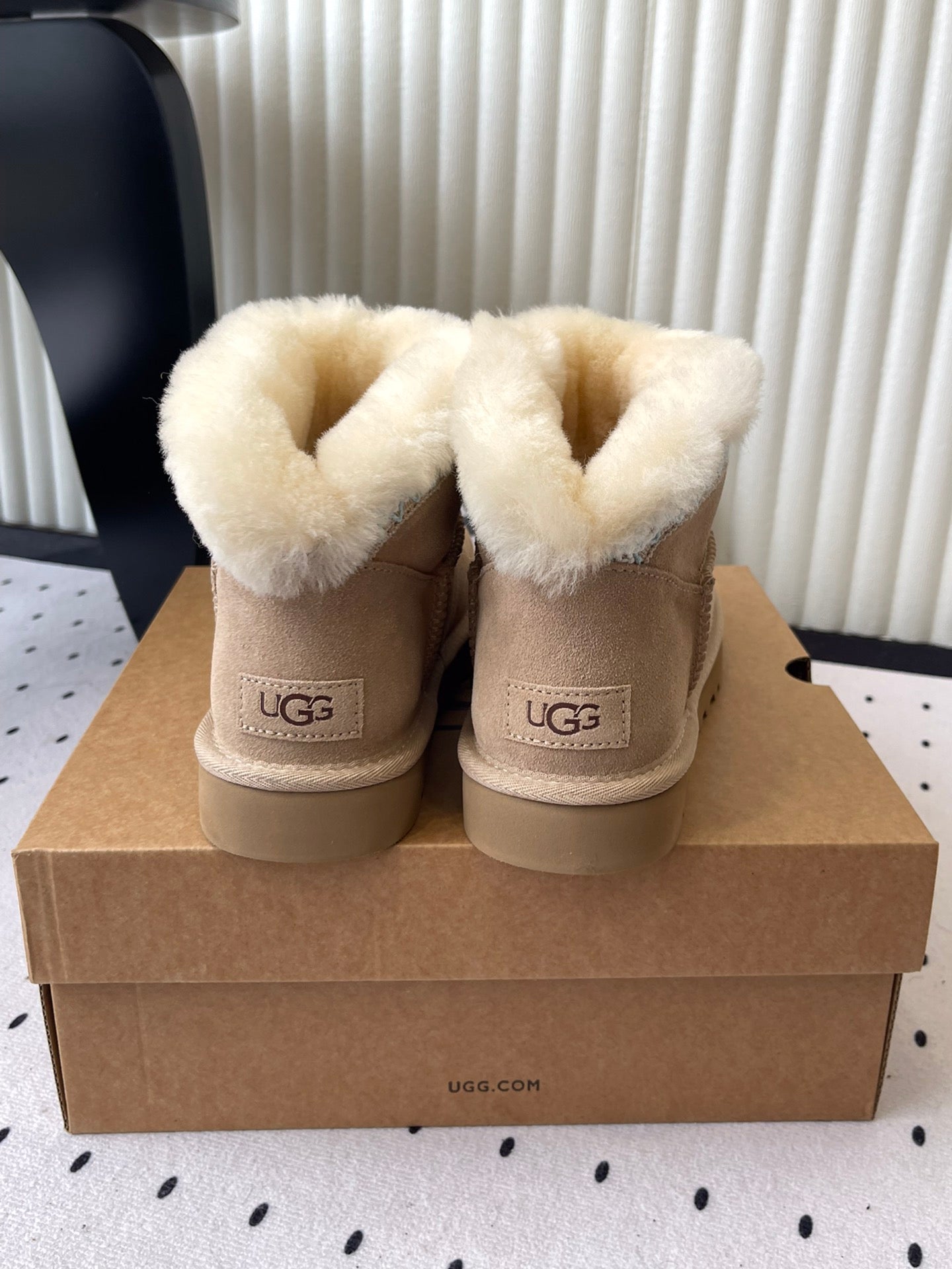 UGG Classic Ultra Mini Taslyn Boots Beige Suede And Wool 514145
