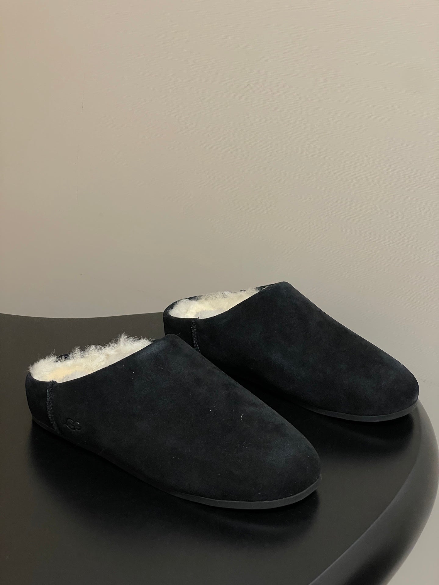 UGG Elea Slip-On Sandals Black Wool Suede 525949