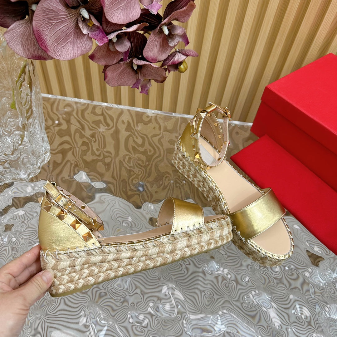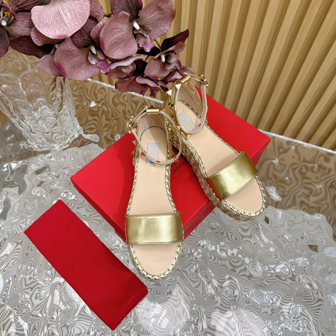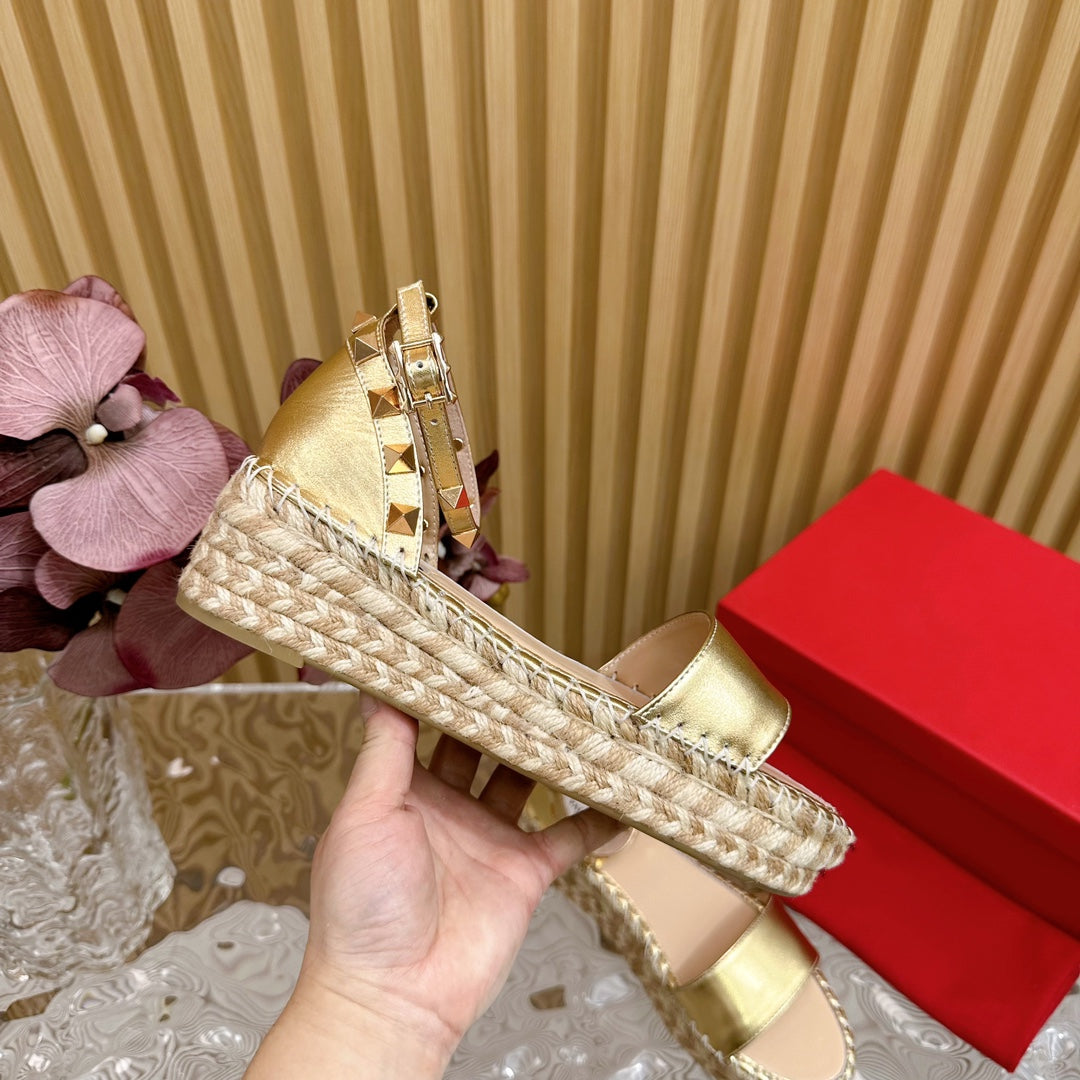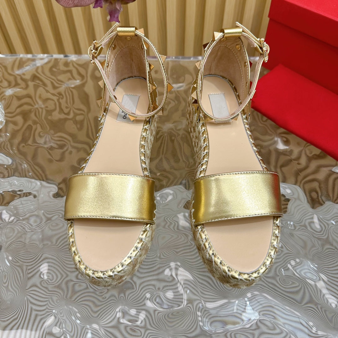 Rockstud Espadrille 45mm Gold leather sandals