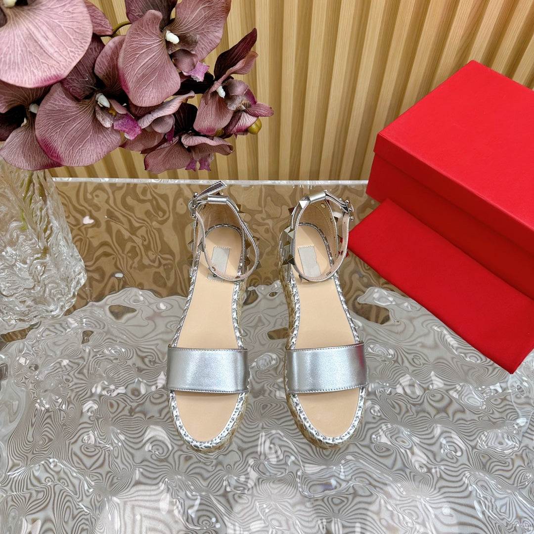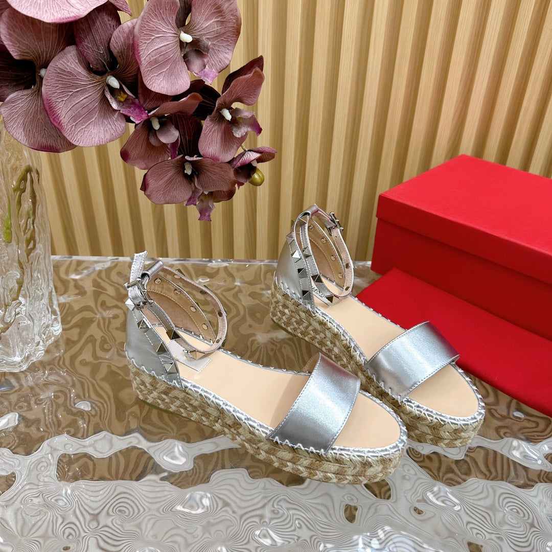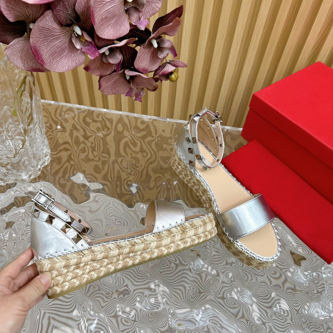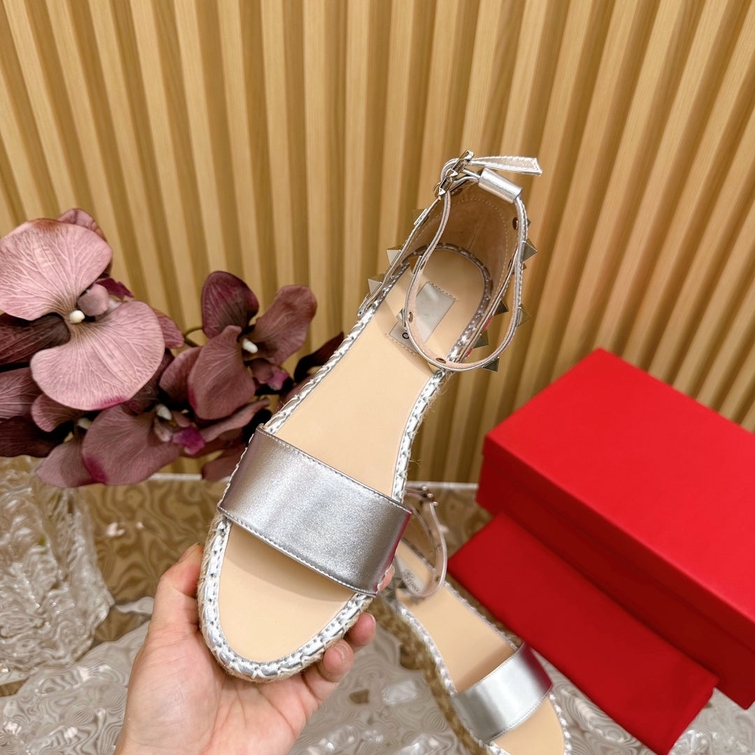 Rockstud Espadrille 45mm Silver leather sandals