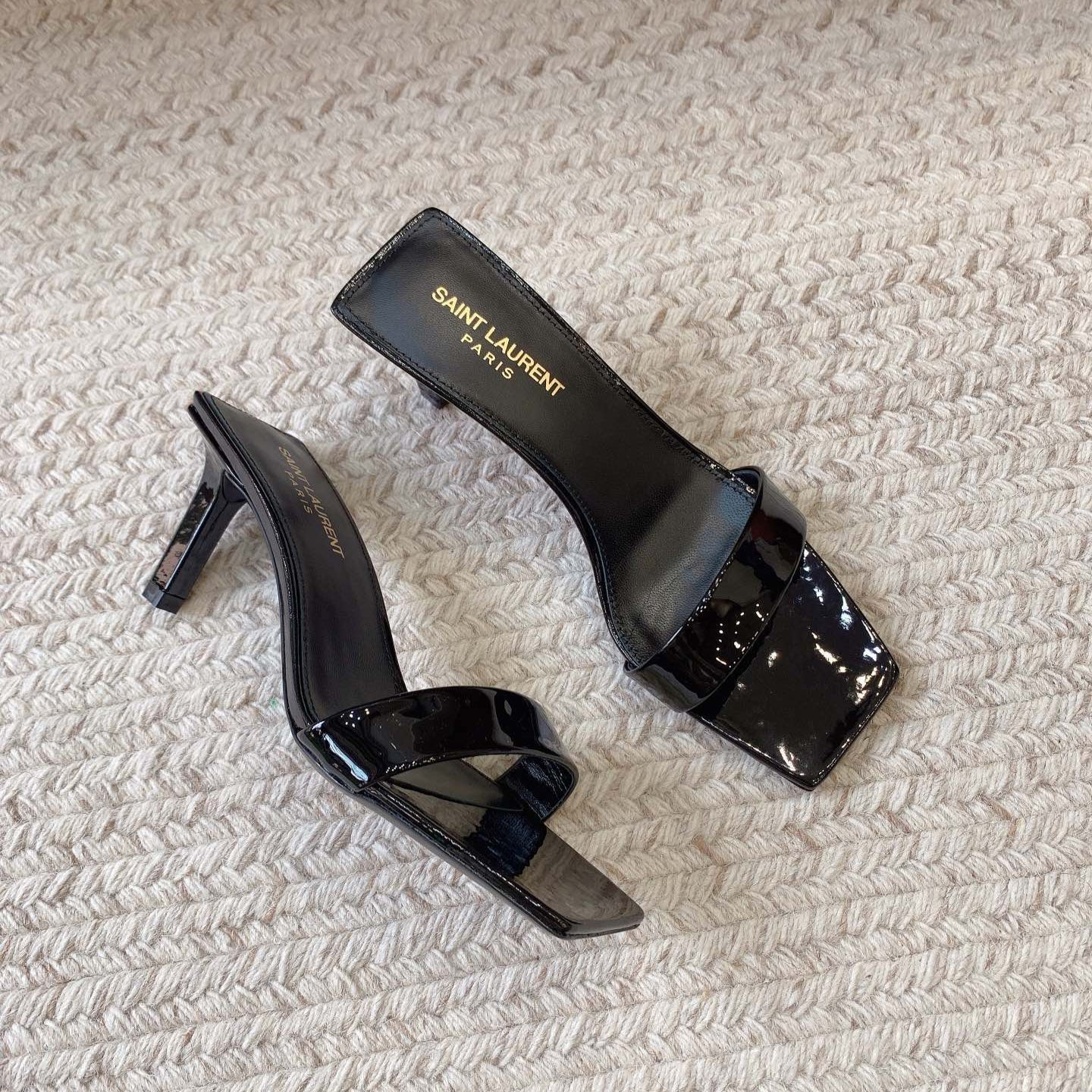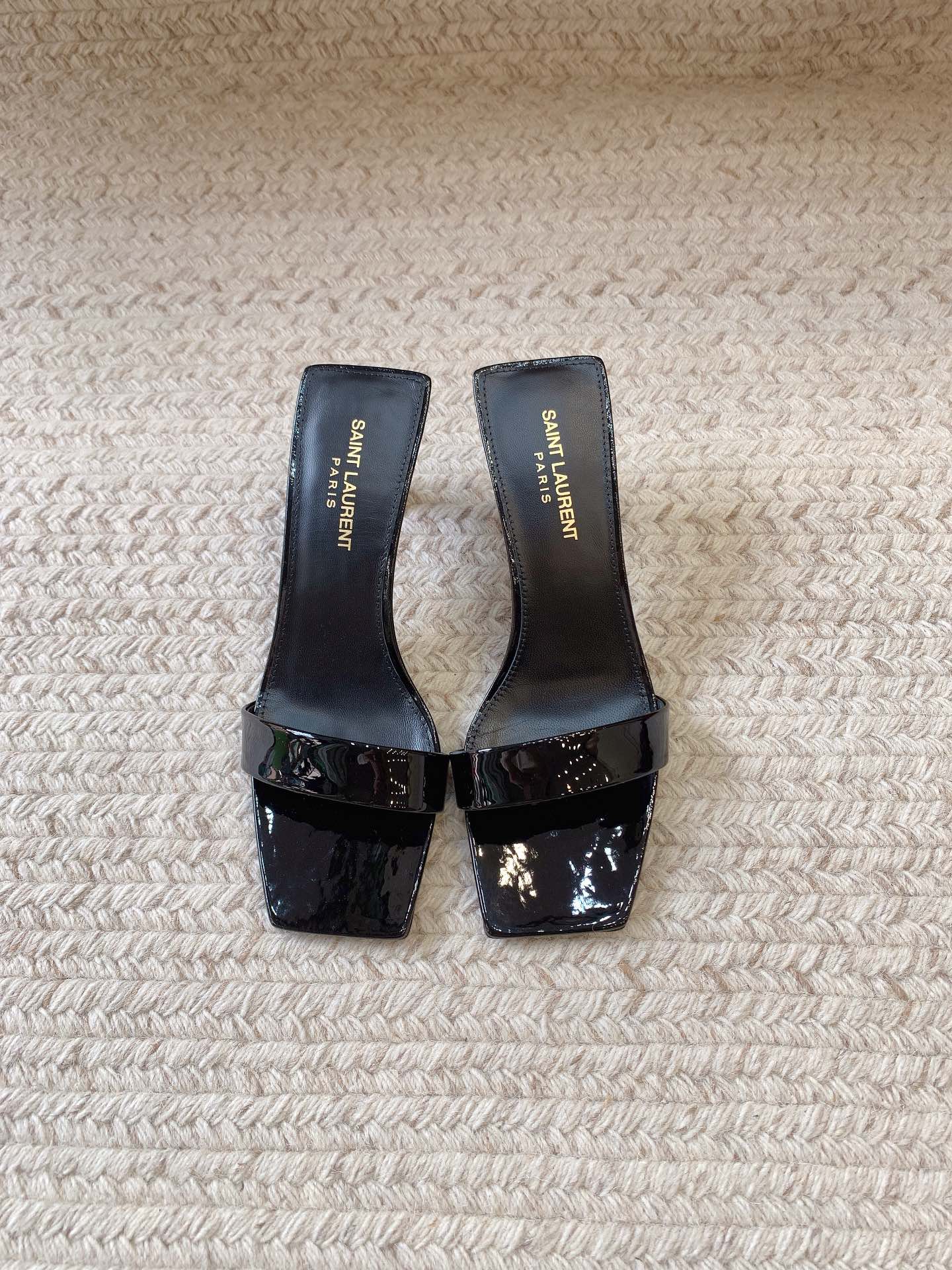 HIGH MULES WITH SQUARE TOE IN BLACK GLOSSY CALFSKIN