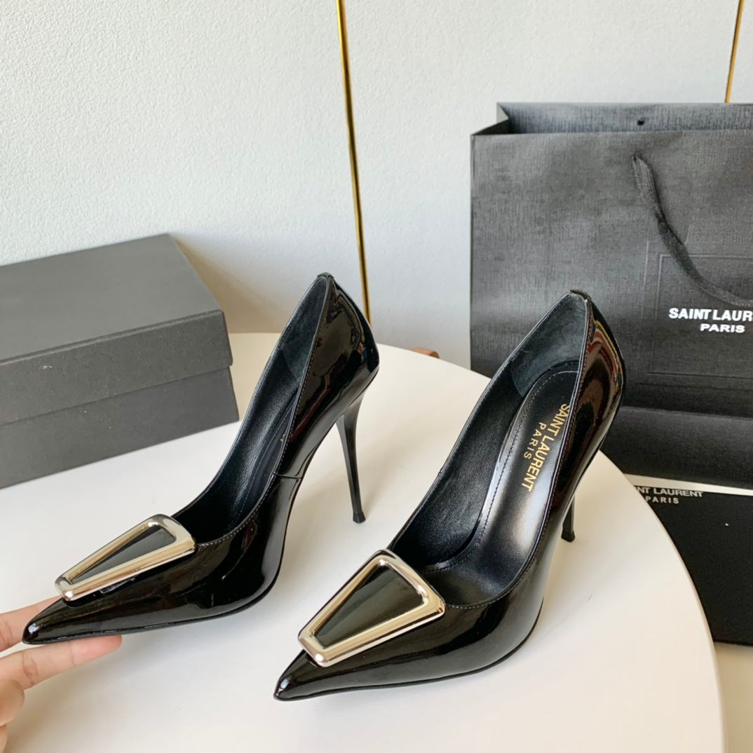 SL TRIANGLE BASIC HIGH HEELS BLACK CALFSKIN