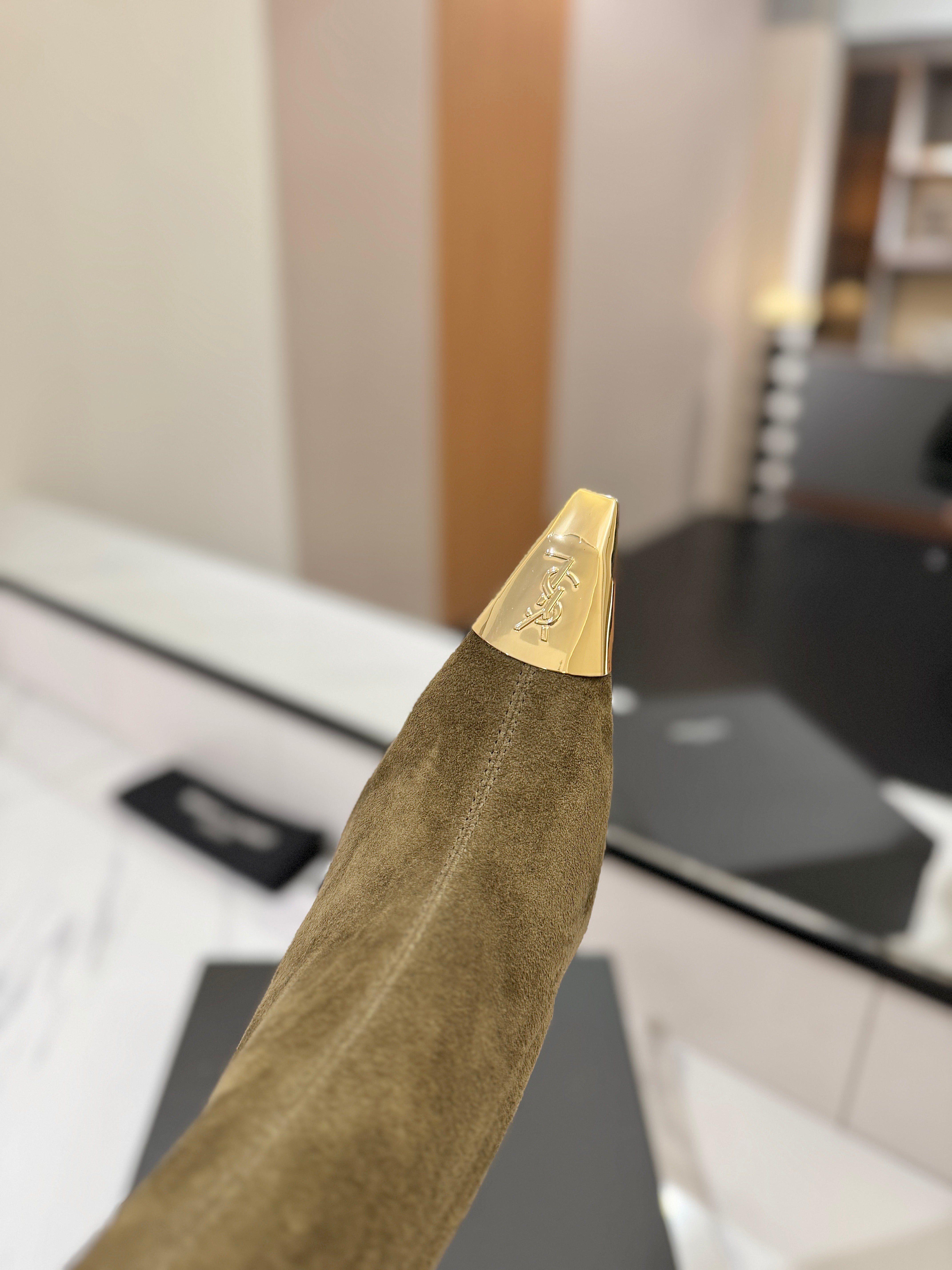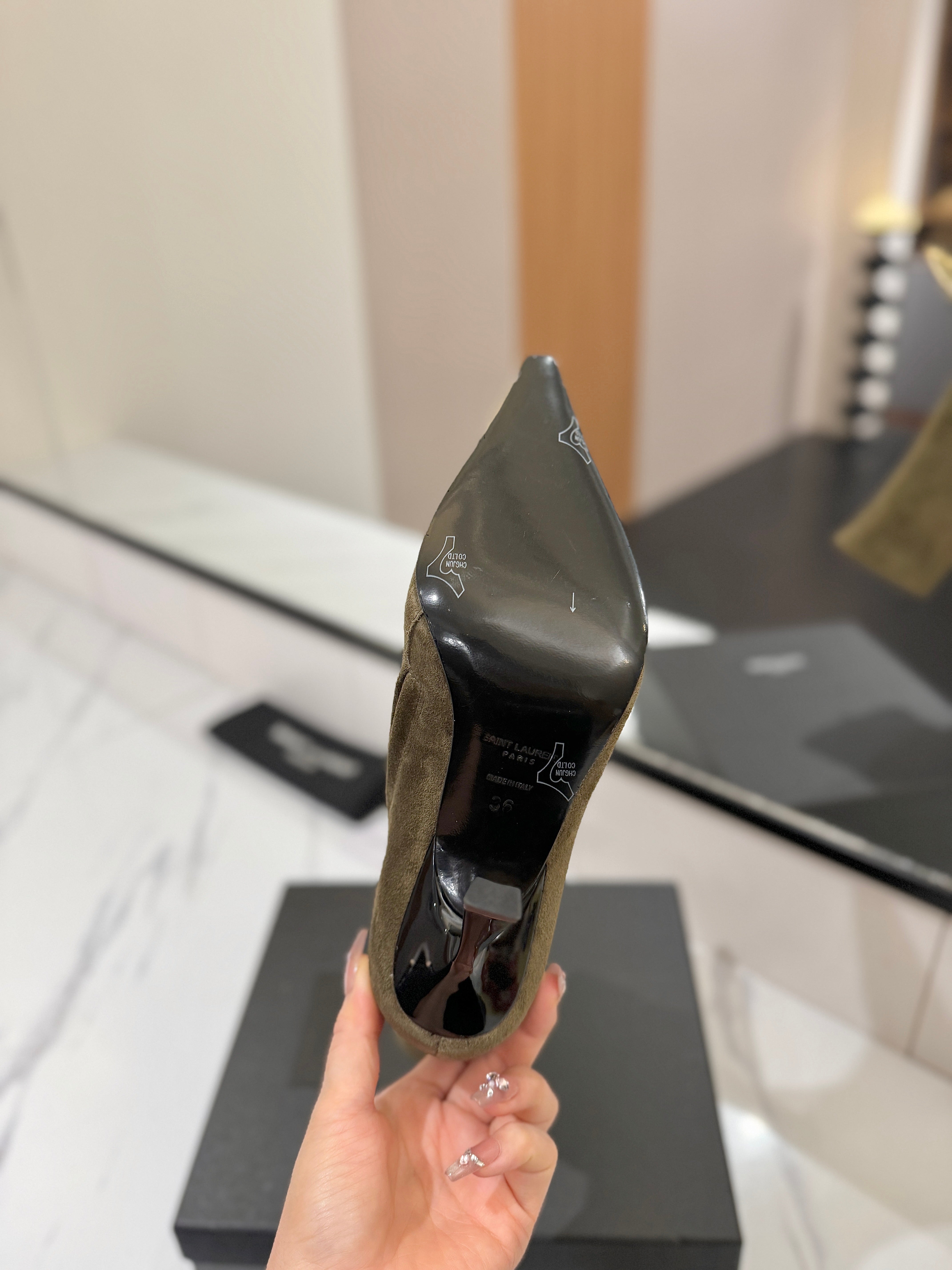 YSL 25 Metal Toe Short Boot Olive Green Gold Suede 520785