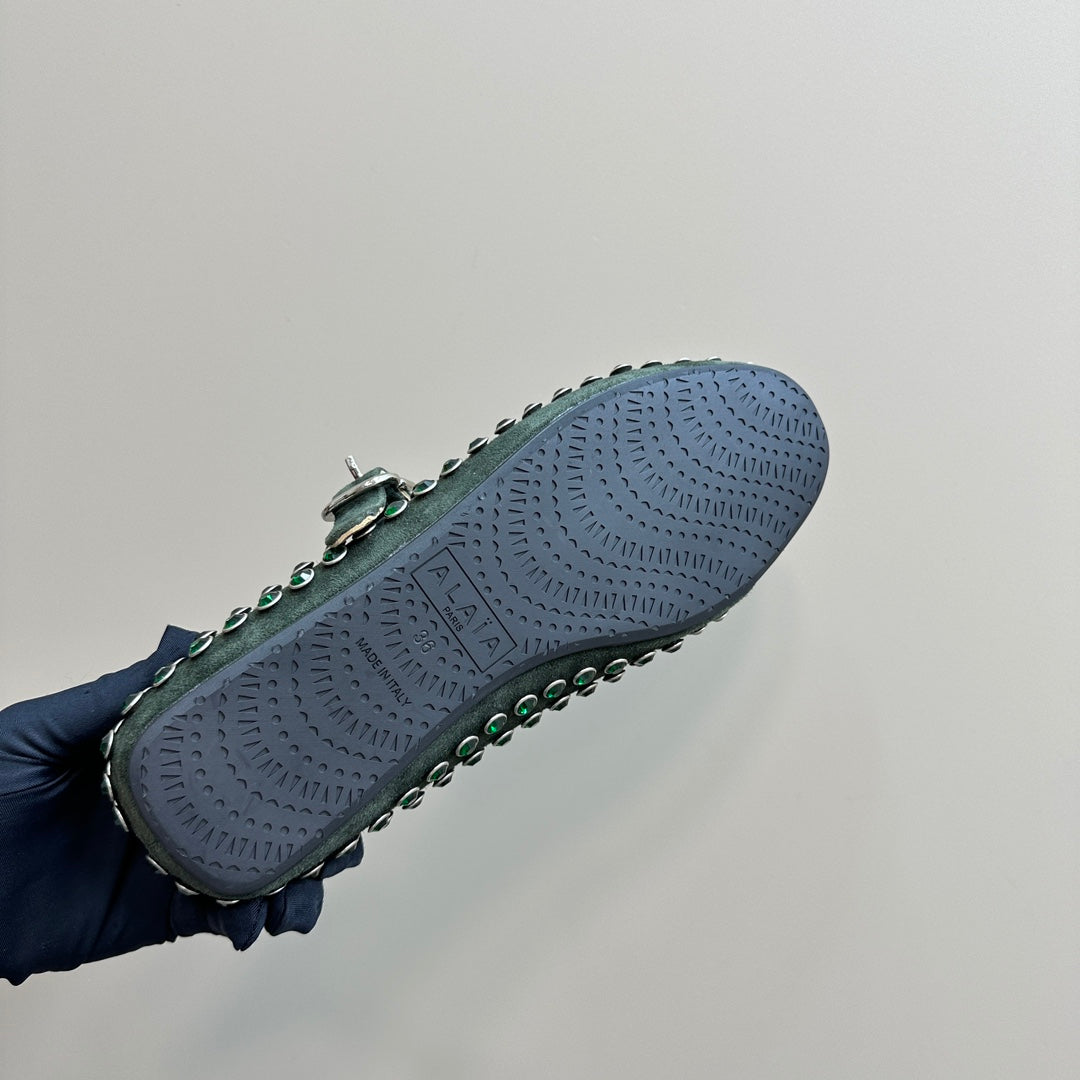Alaia Strass Suede Ballet Flats In Dark Green 999318