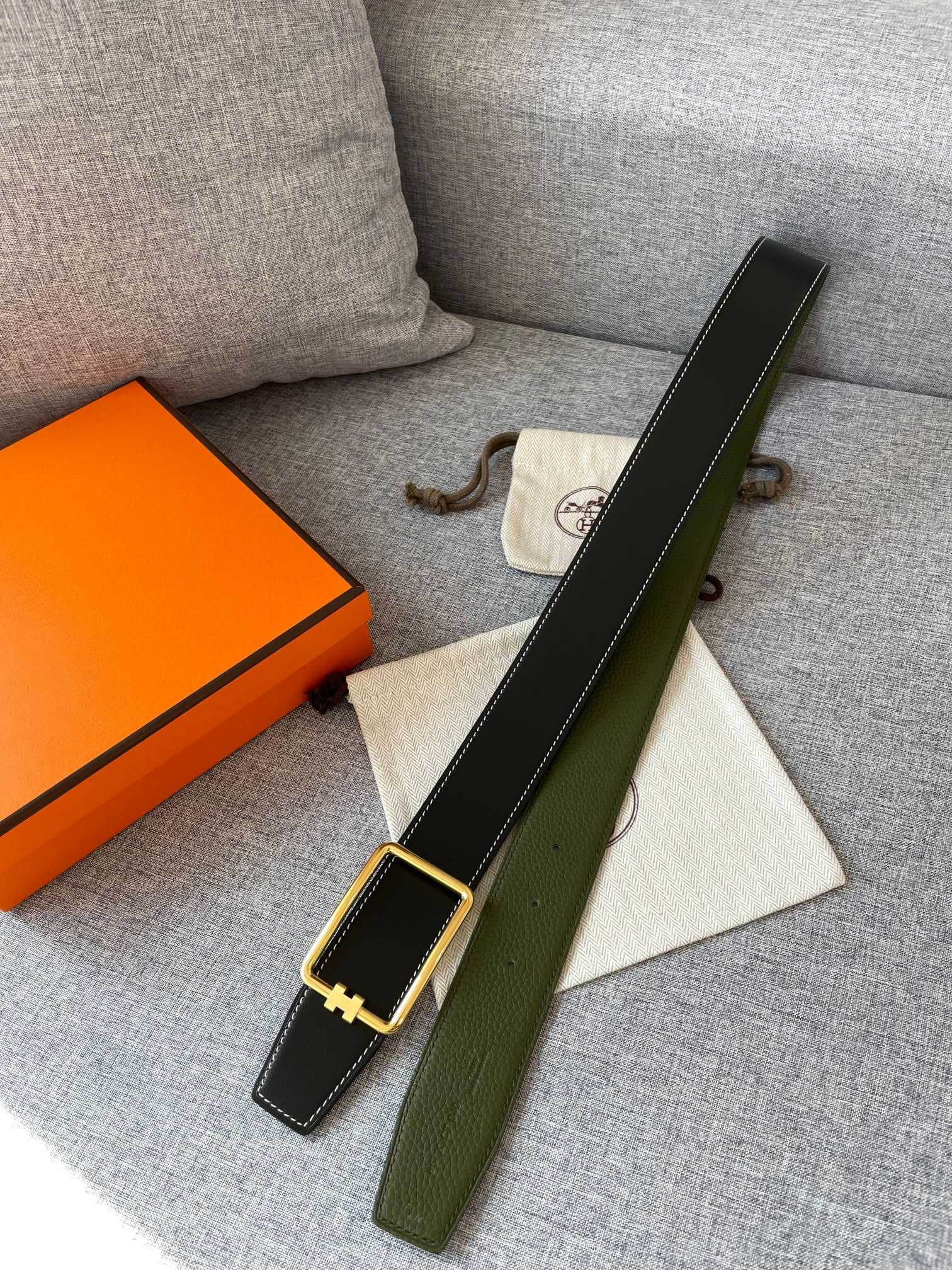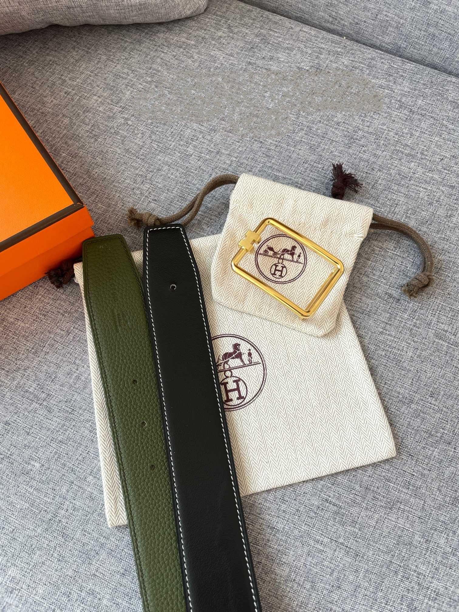 H TUBE BELT 38MM GOLD BUCKLE GREEN BLACK LEATHER