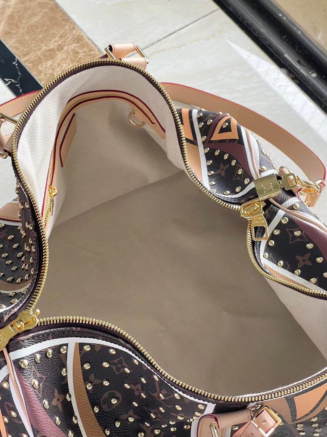 KEEPALL BANDOULIÈRE 50 IN PARFLECHE PATTERN MONOGRAM CANVAS