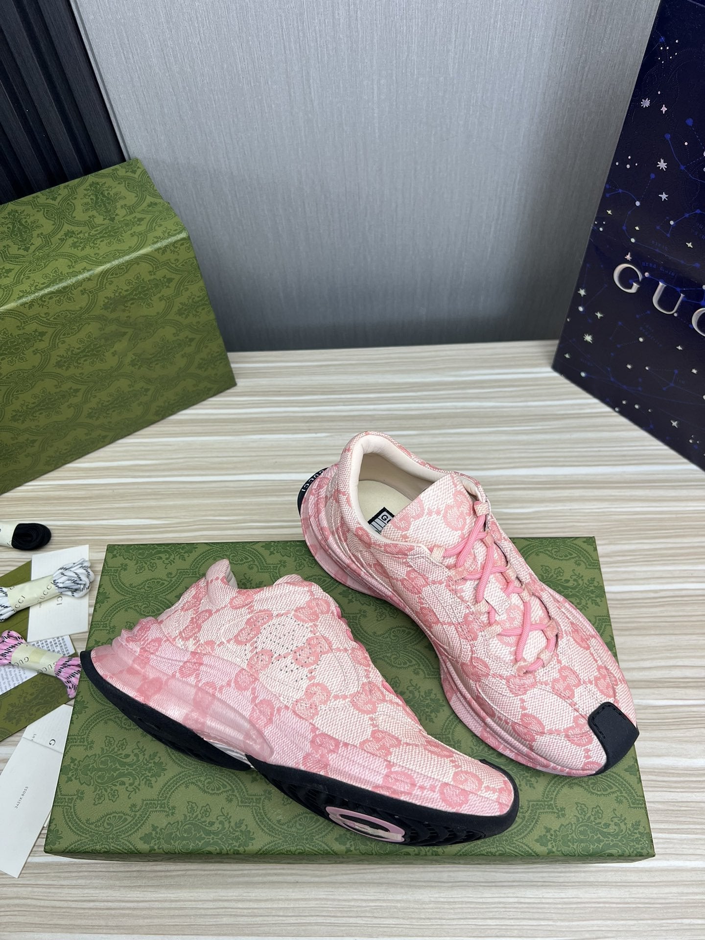GG RUN PINK LEATHER SNEAKERS