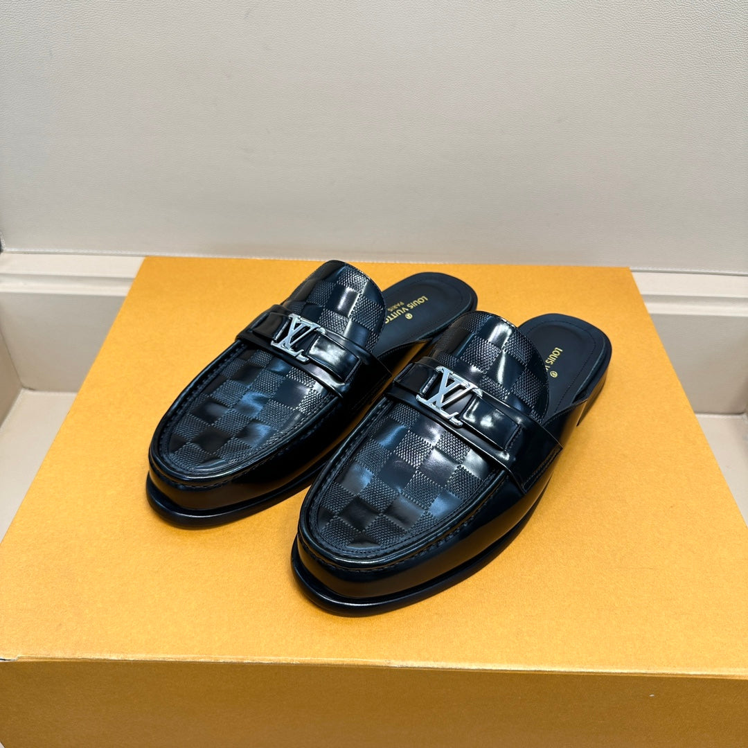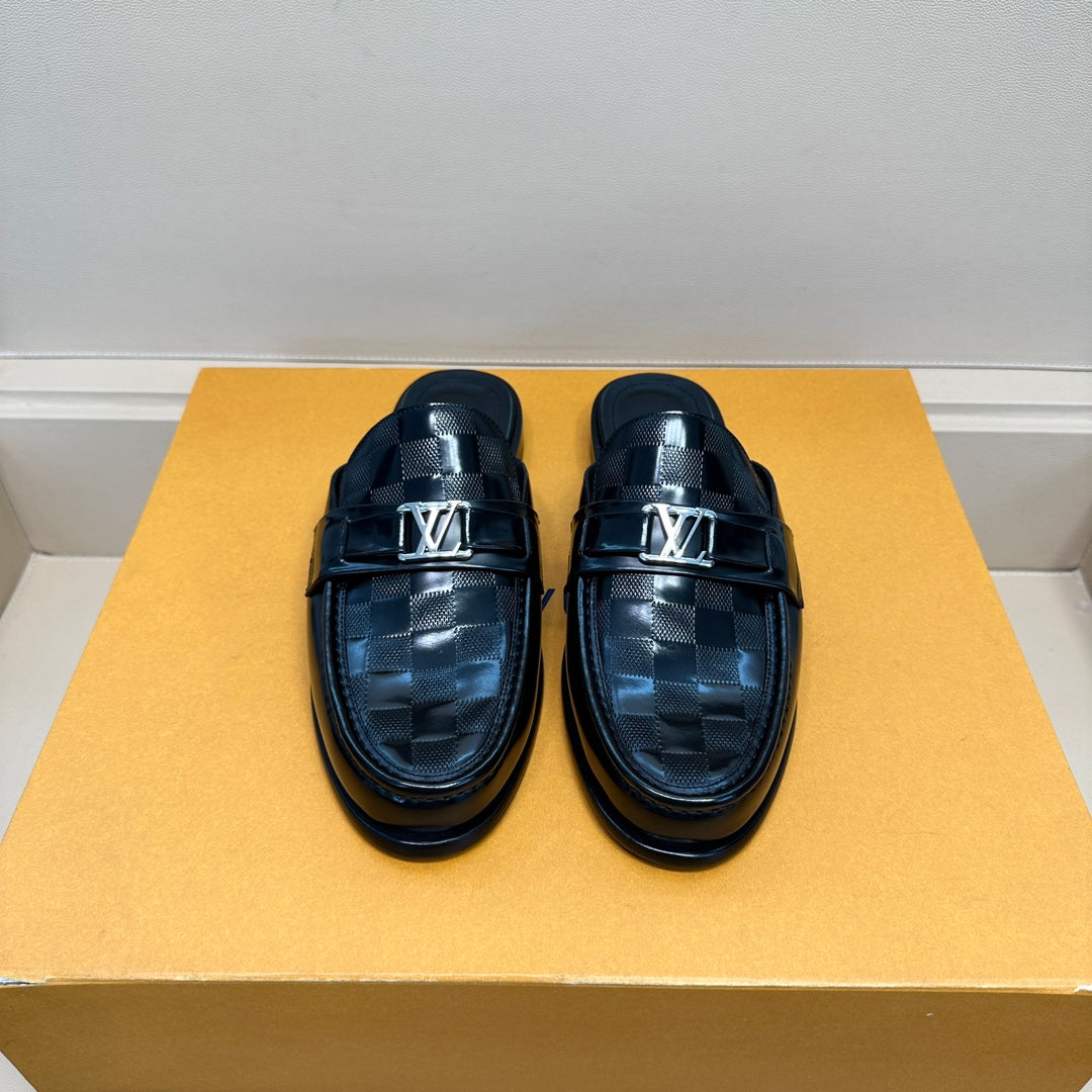 LV EASY MULE IN DAMIER BLACK CALFSKIN