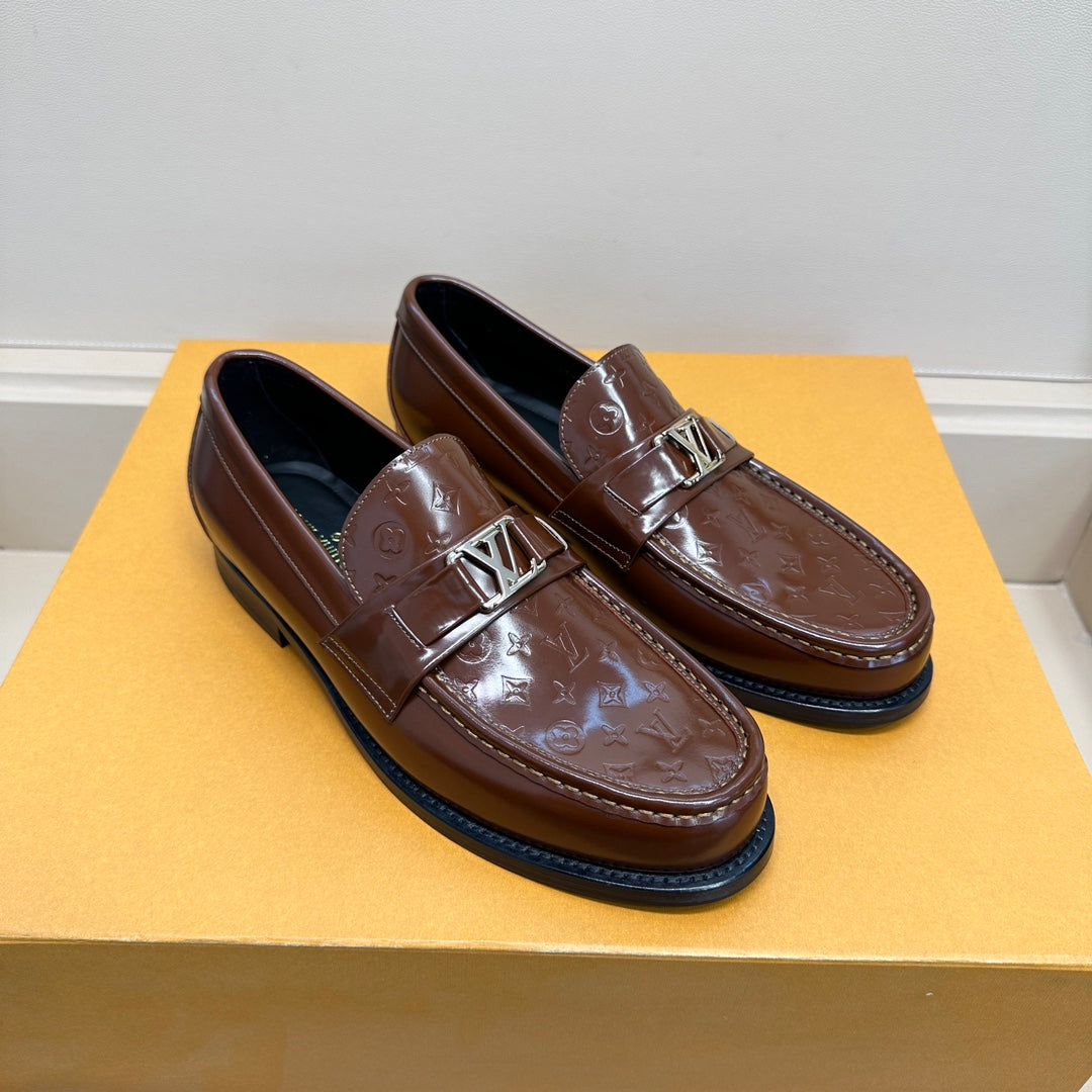 LV MAJOR LOAFER GLOSSY CHOCOLATE BROWN EMBOSSED CALFSKIN