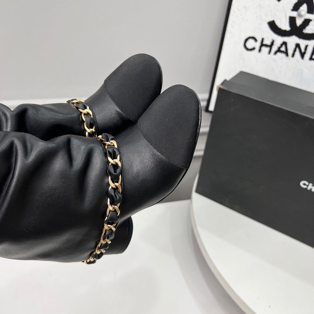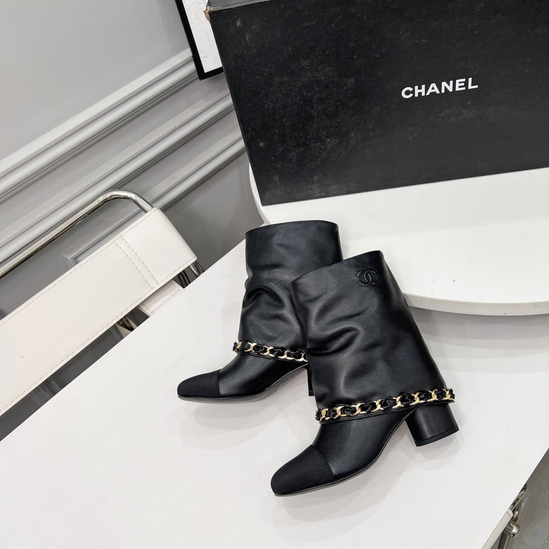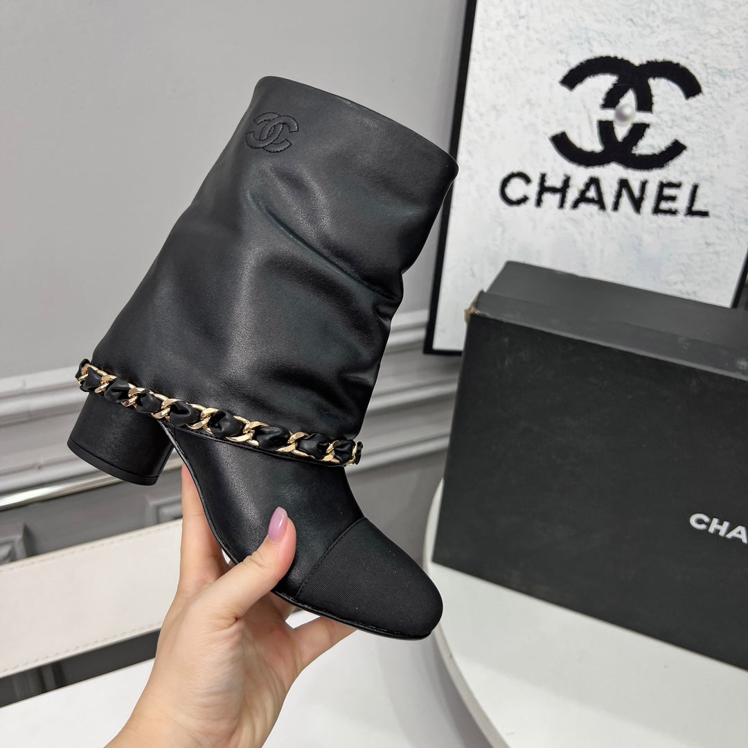 CC 25 Short Boots With Chain 55mm Black Cowhide Grosgrain 374029