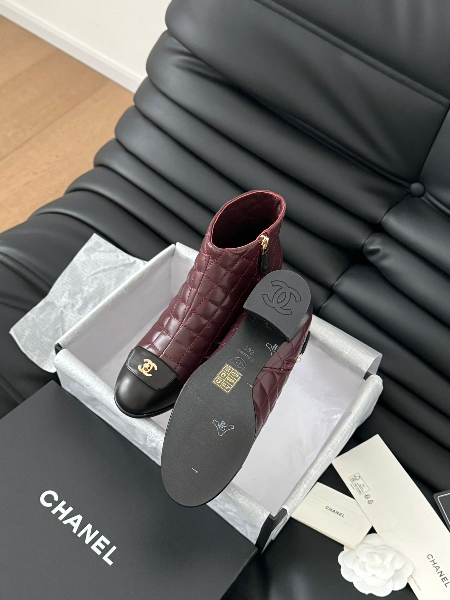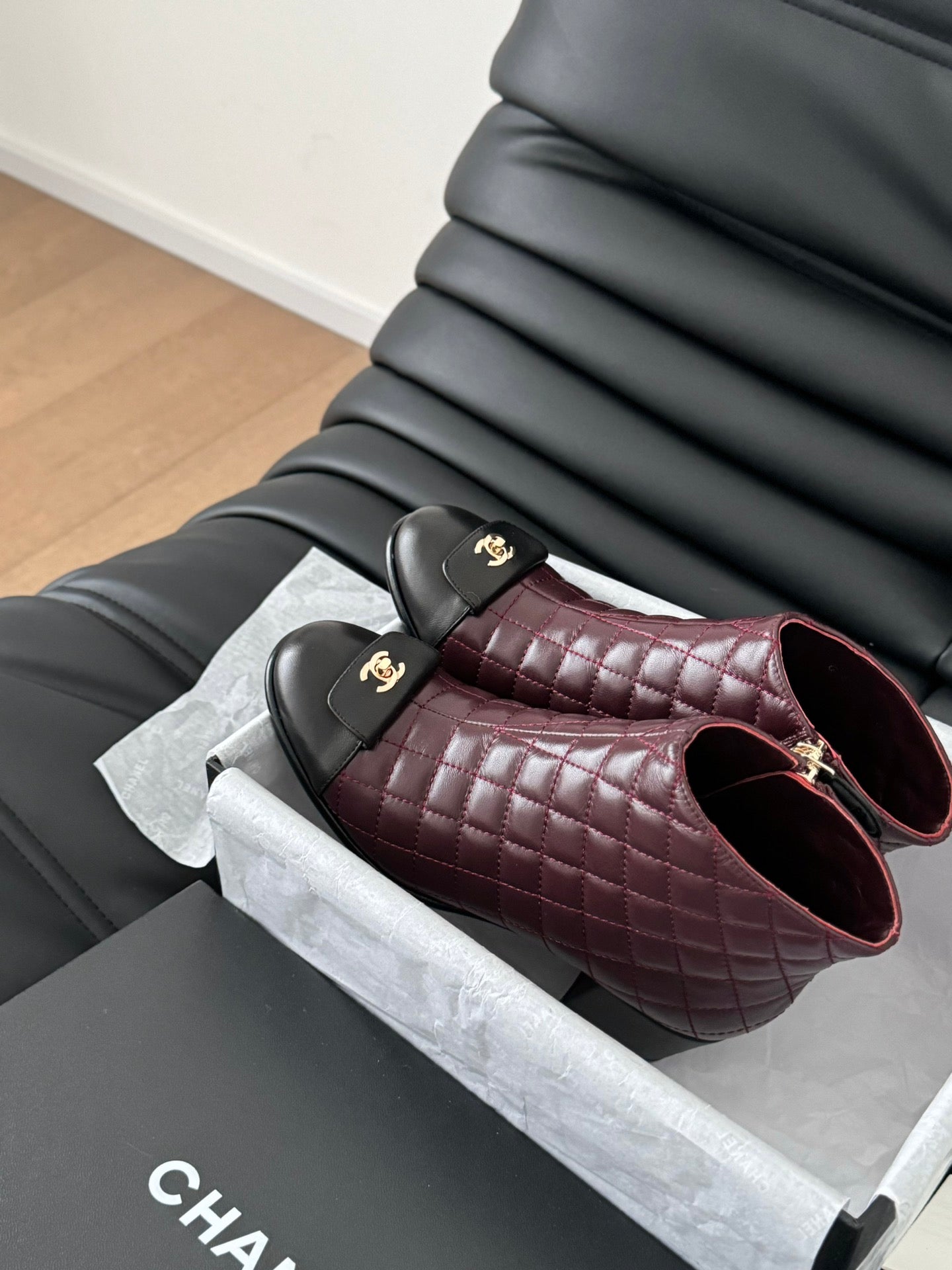 CC SHORT BOOTS 65 MM IN SANGRIA PURPLE MIX BLACK QUILTED PATTERN LAMBSKIN