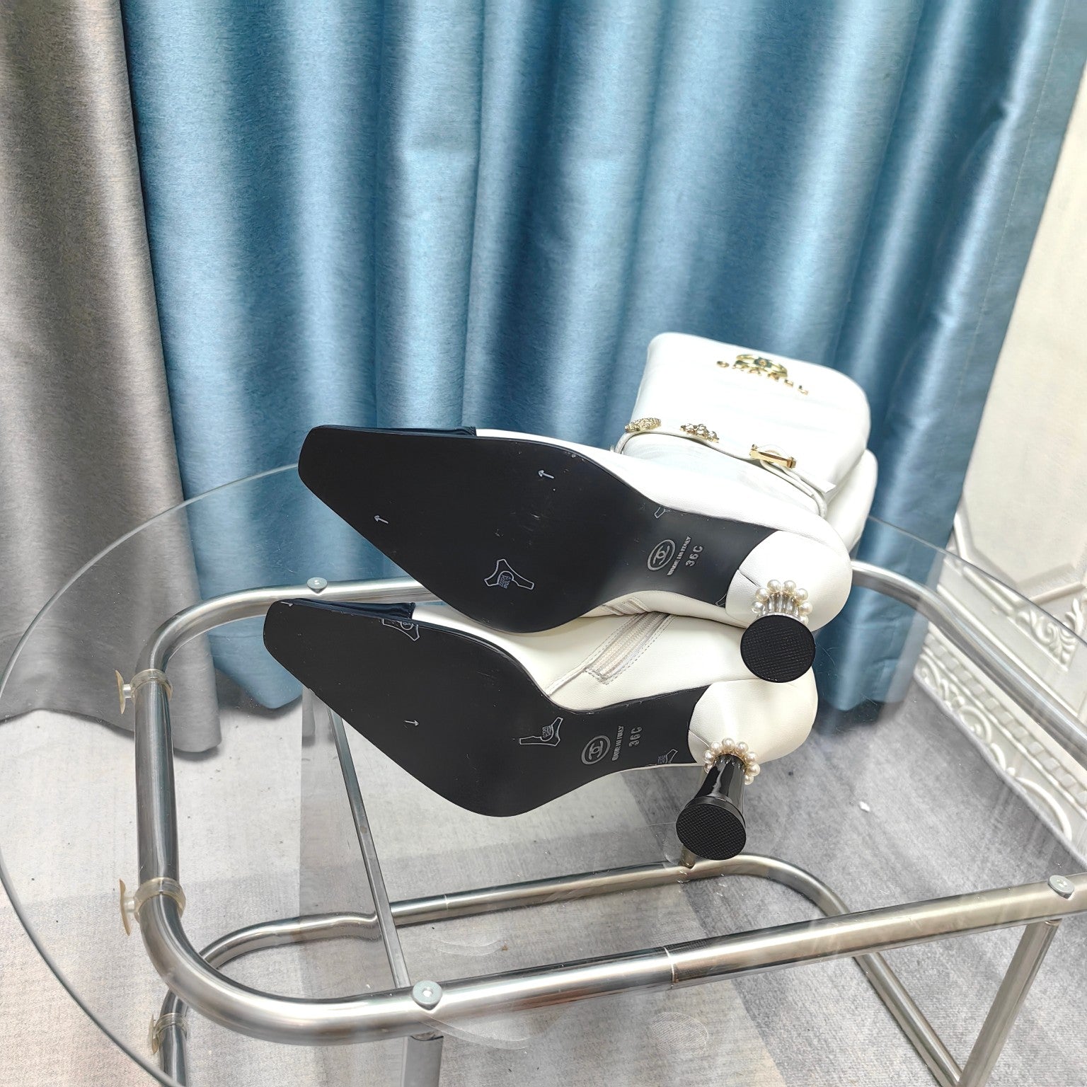 CC High Boots White Cowhide And Lambskin