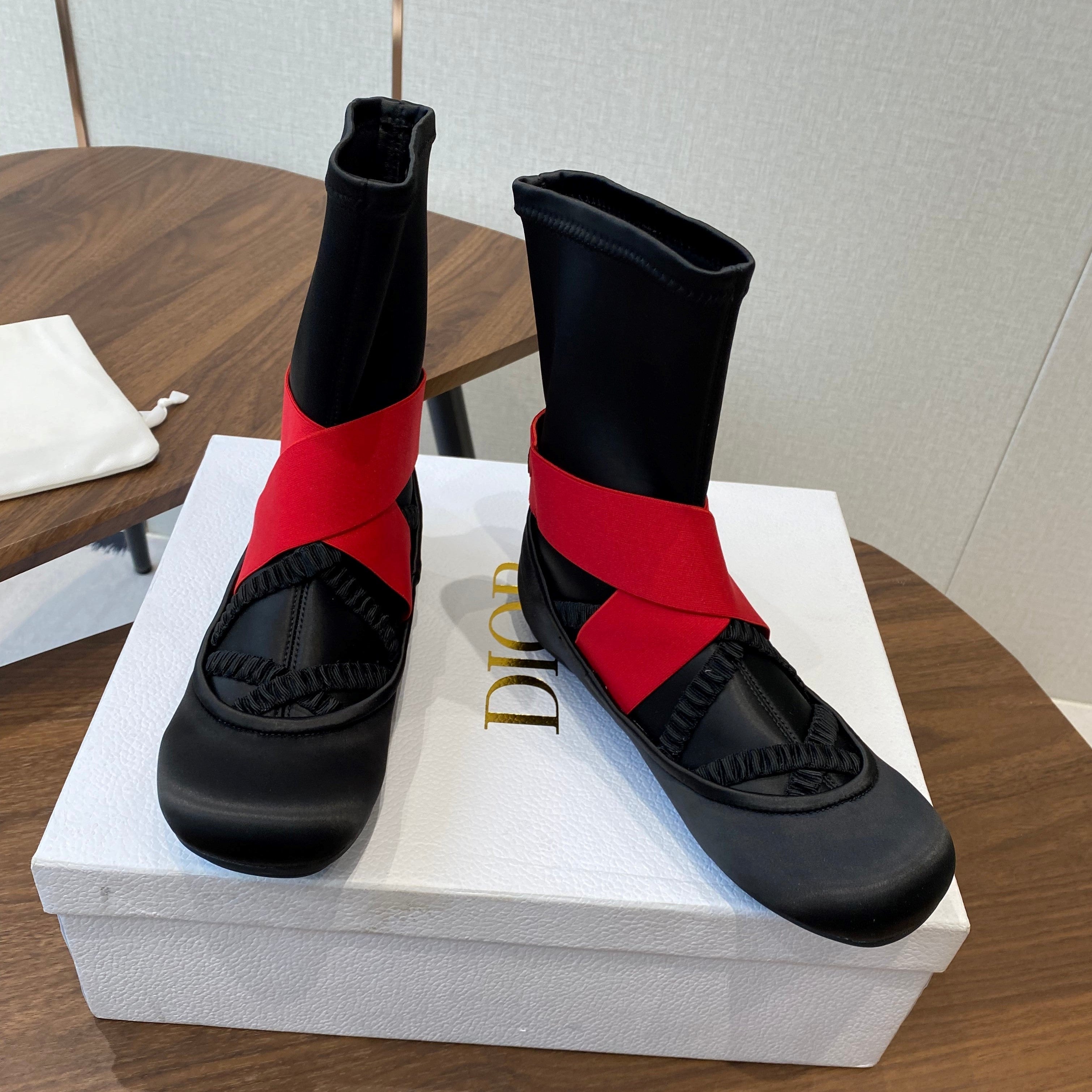 CD Ballet Stretch Boots Black Red Sheepskin Fabric 431501