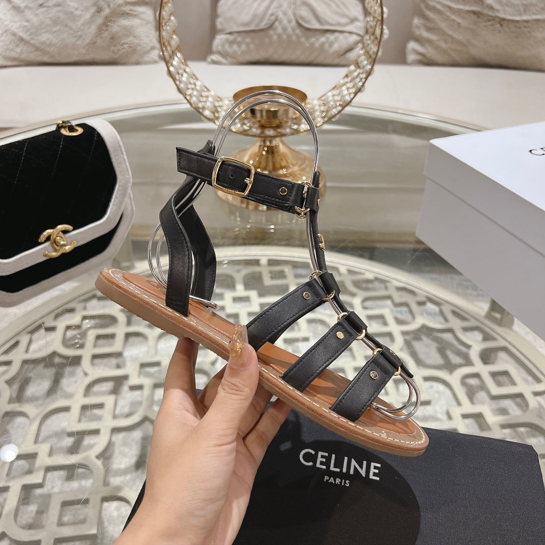 CLEA TRIOMPHE GLADIATOR SANDAL IN BLACK CALFSKIN - VEGETAL TANNING