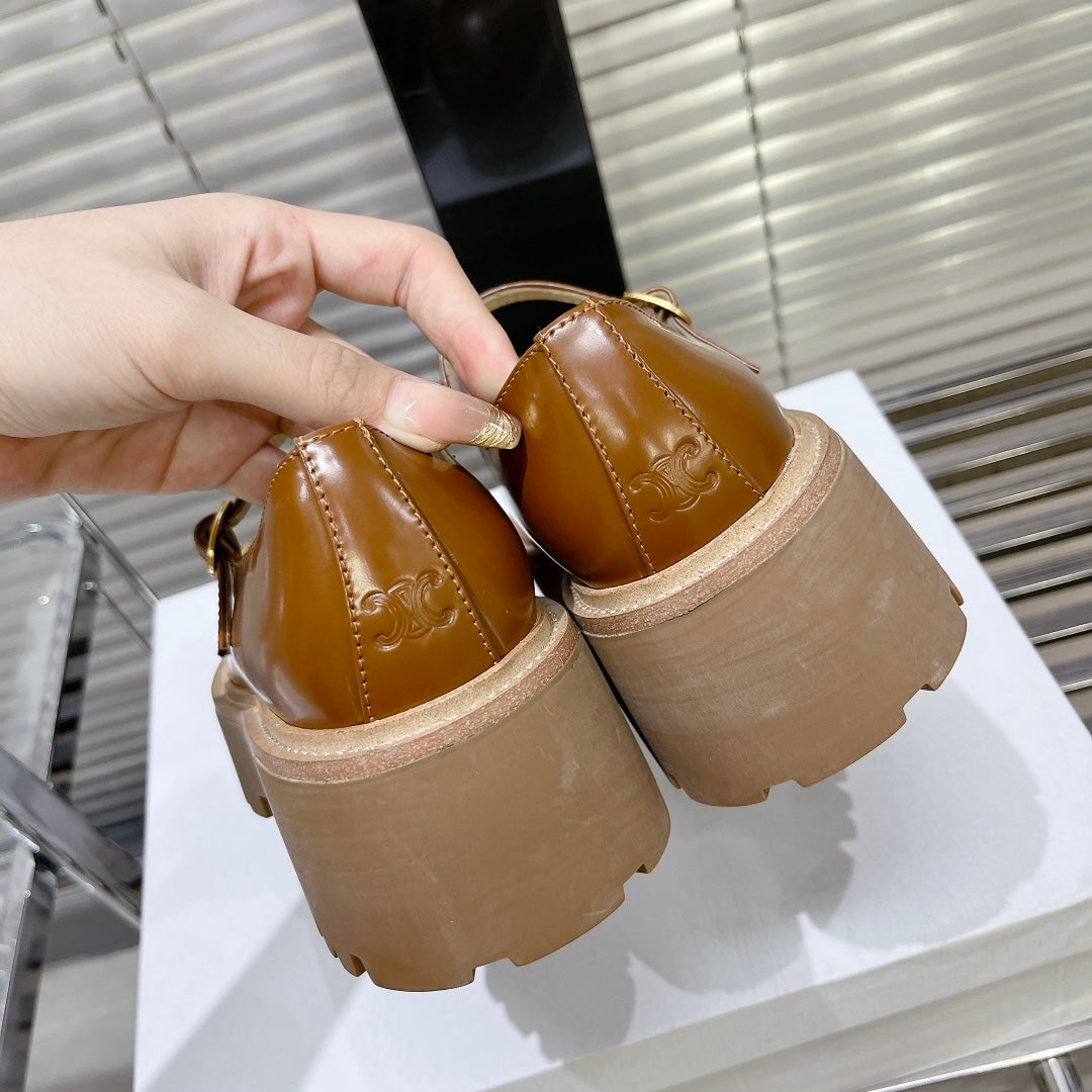 HIGH FLAT SANDALS WITH DOUBLE STRAP-DESIGN LEATHER CARAMEL BROWN