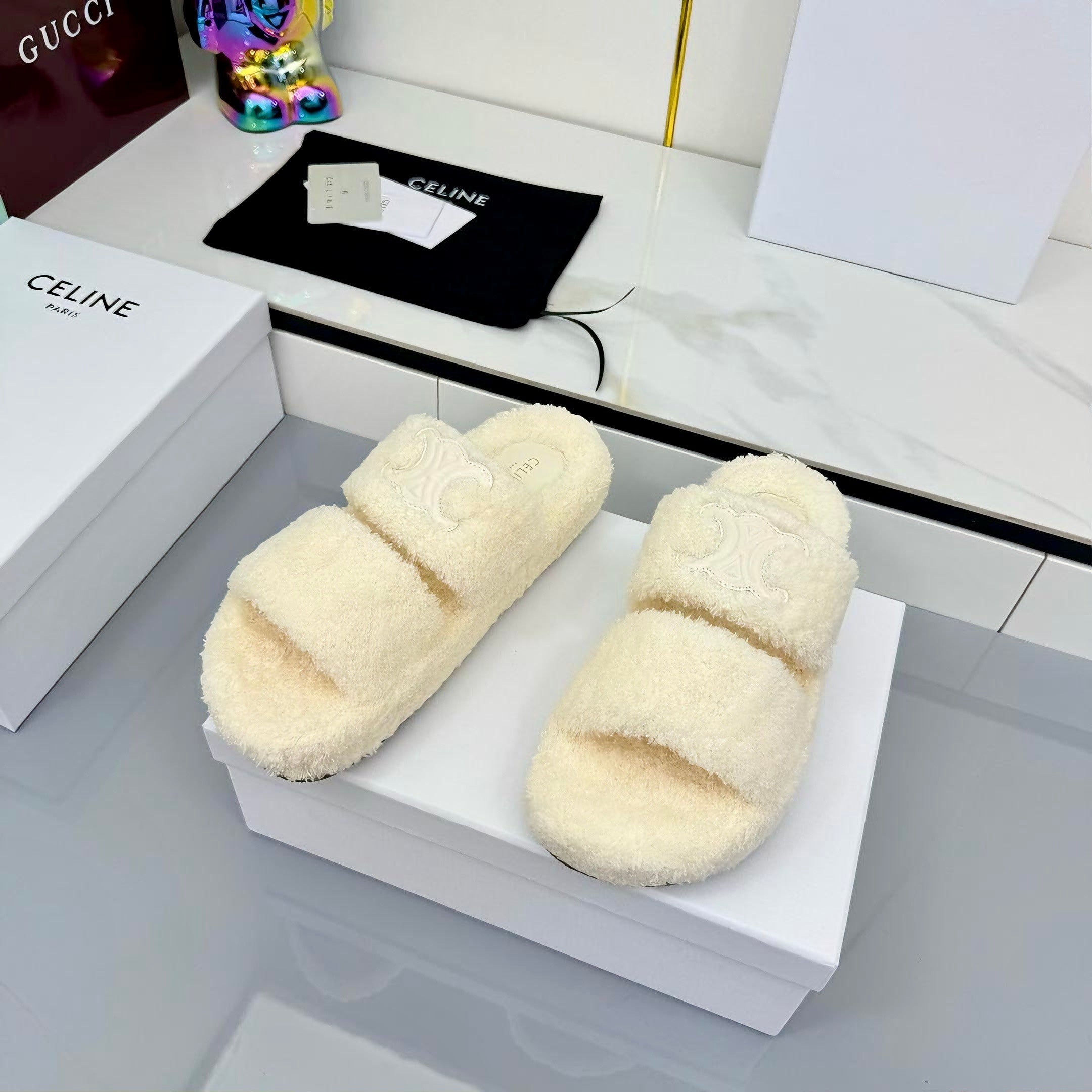 CL 25s Triomphe Slides 50mm White Wool & Rubber 434464
