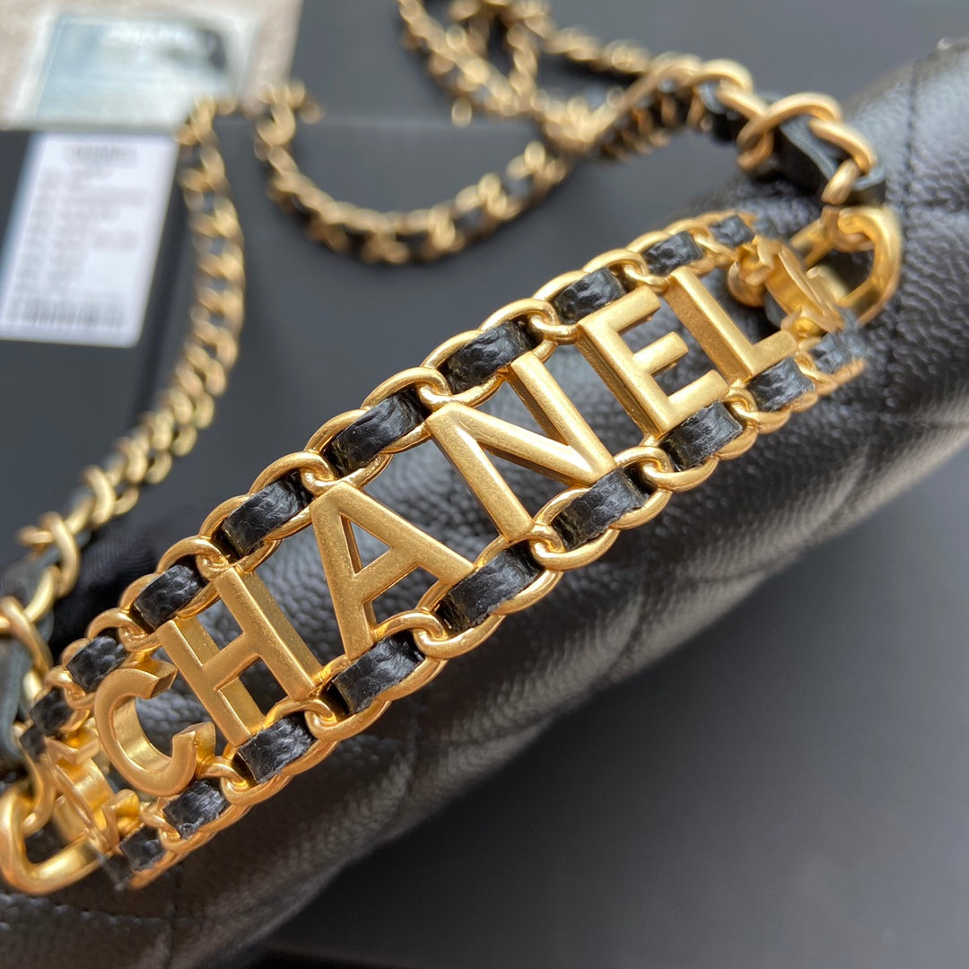 CC Logo Flap Bag 20cm Black Caviar GHW 235167