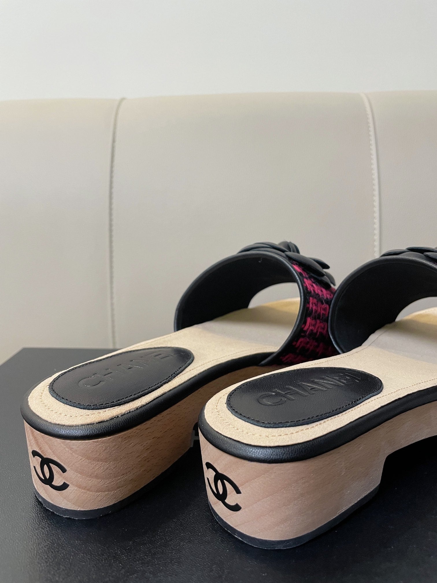 cc mule sandal 45 black red fabric beige calfskin
