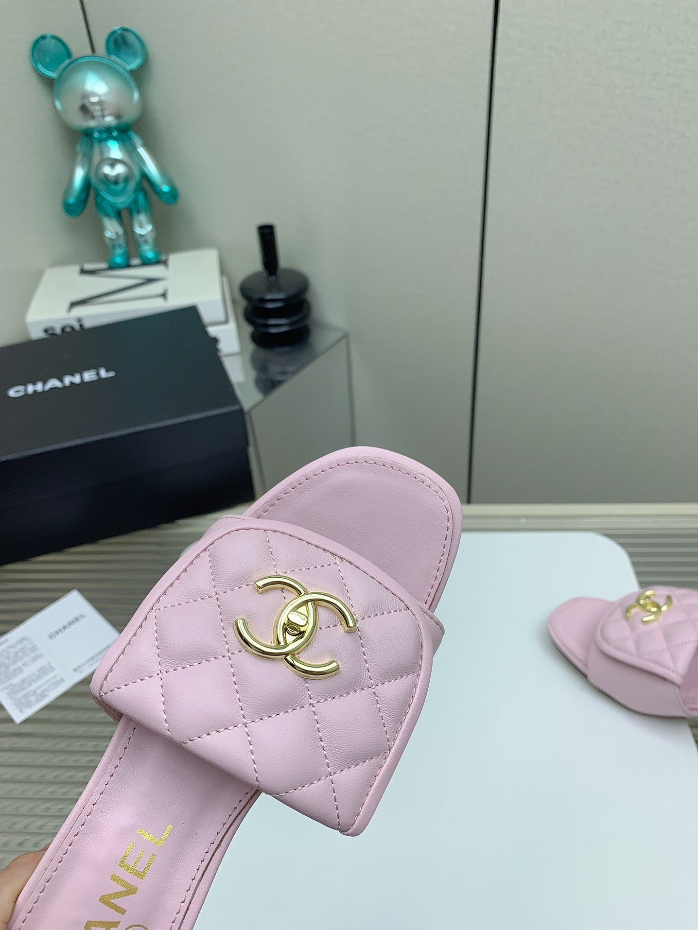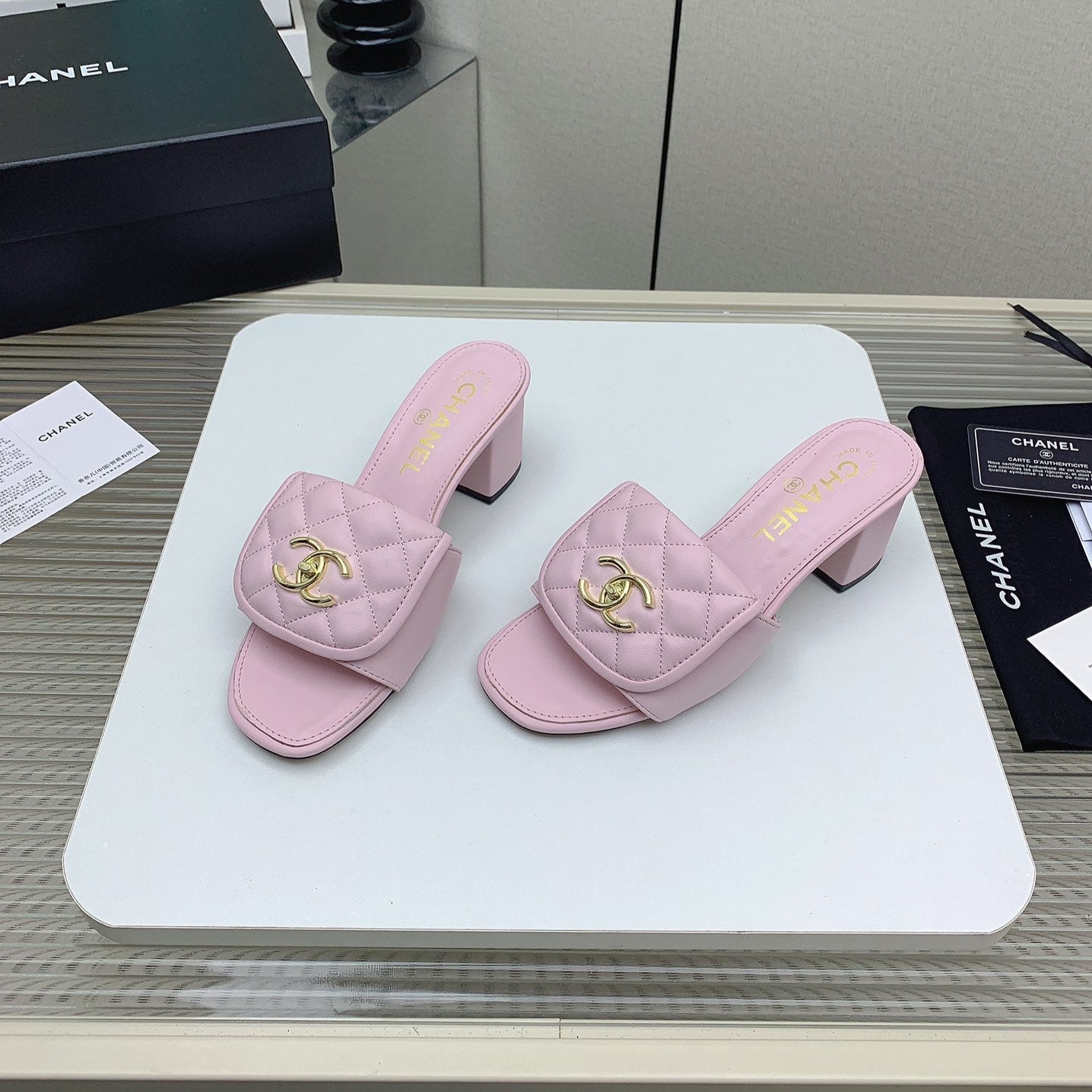 CC Mule Sandals 50mm In Light Pink Quilted Lambskin 148948