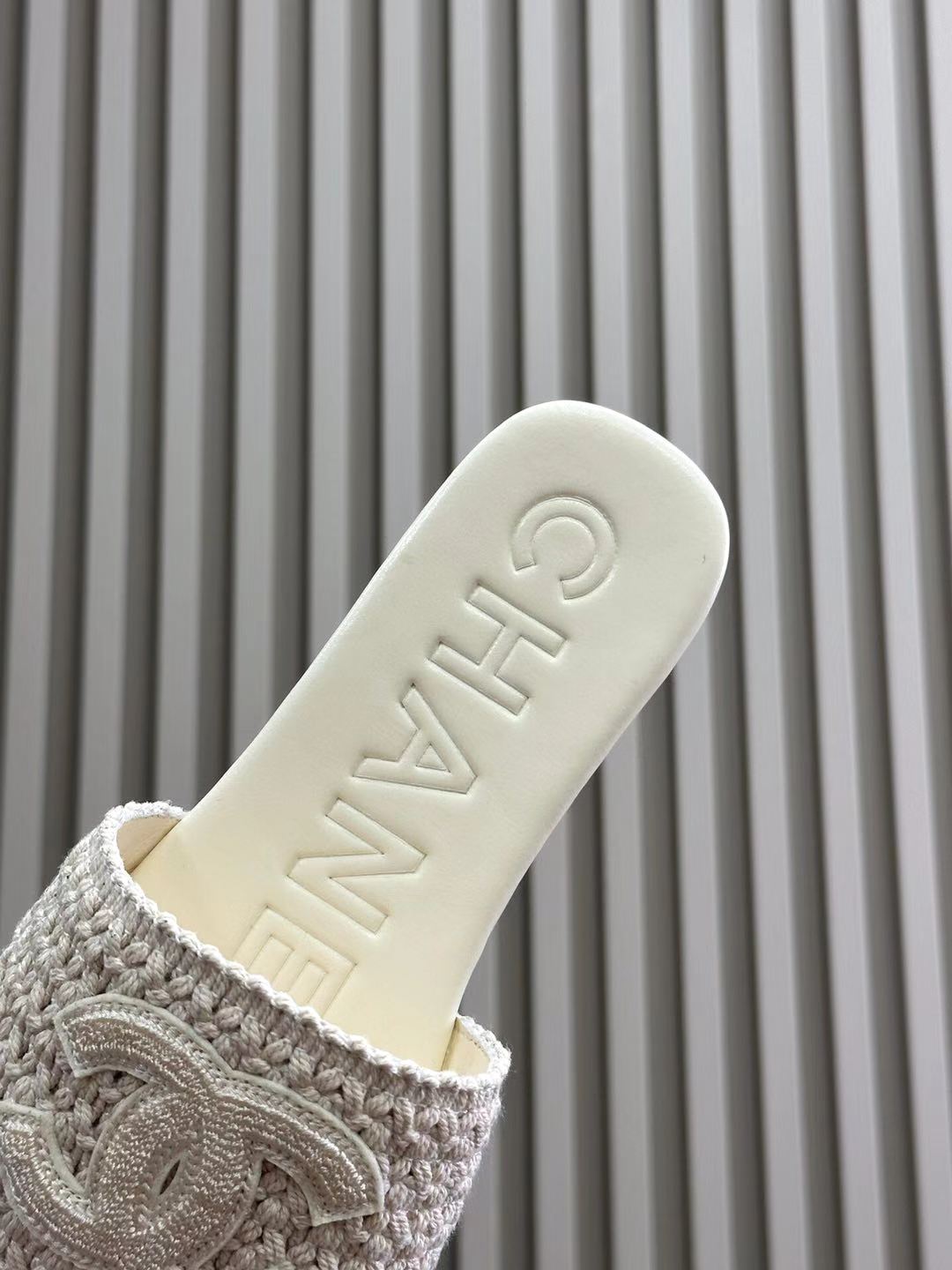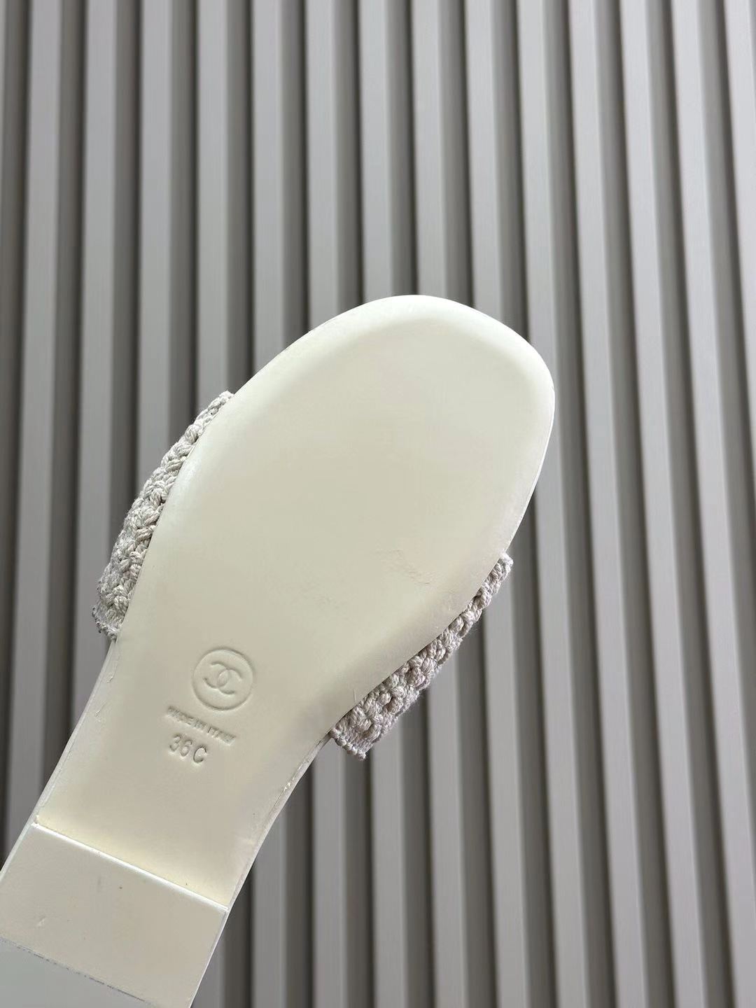 CC WOVEN SLIPPERS WHITE COWHIDE SOLE