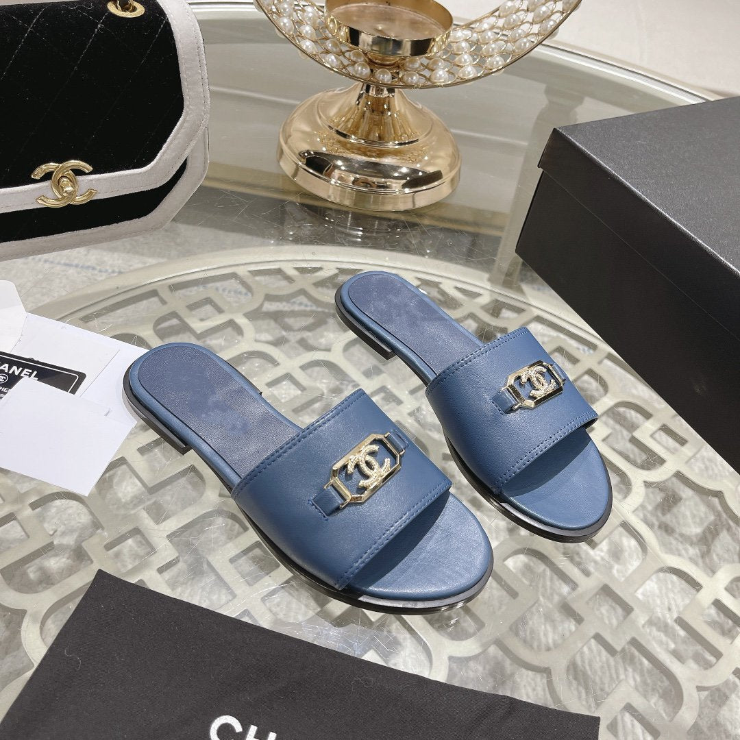 Mules Blue Shiny Calfskin