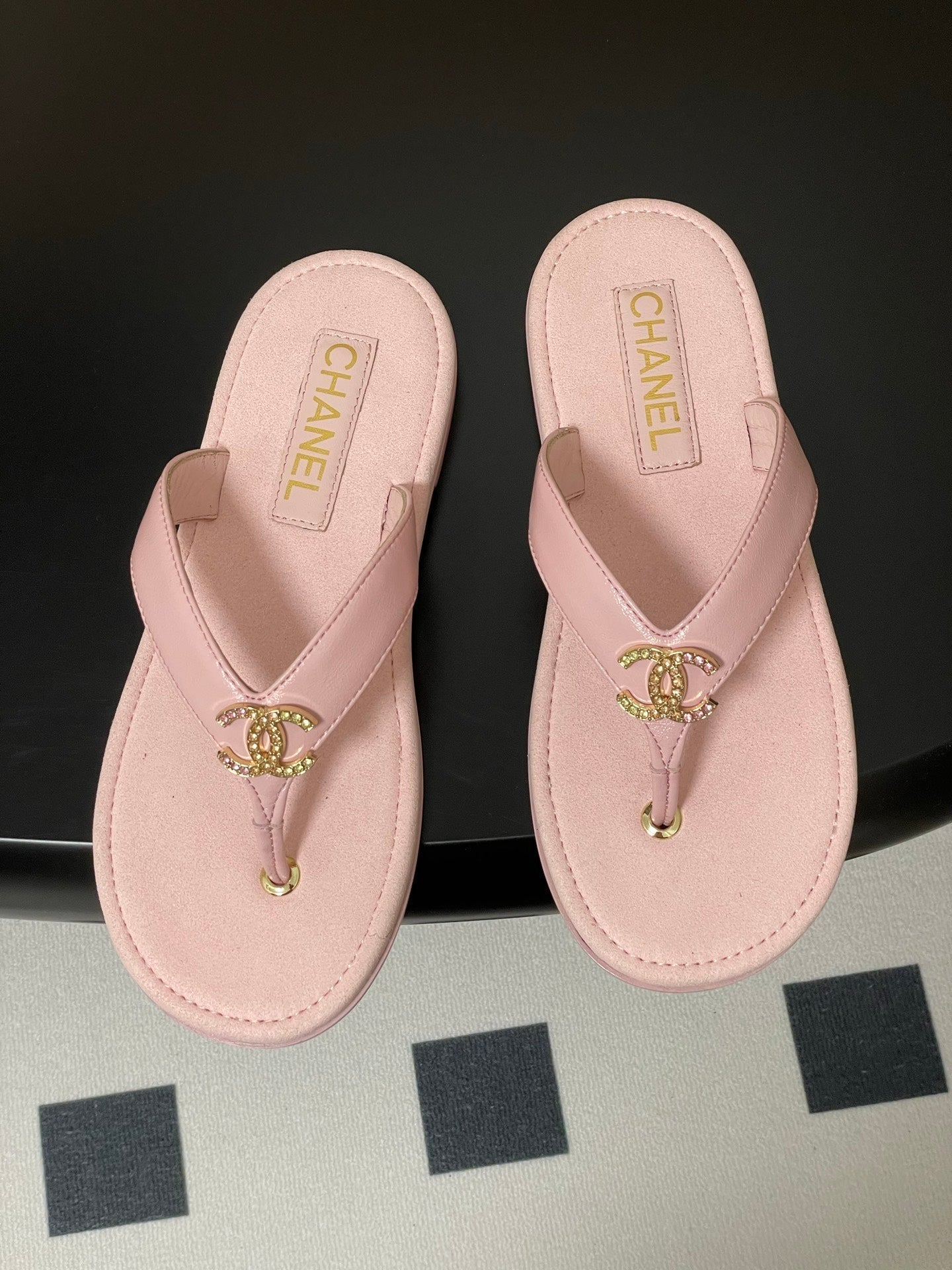 CC 25P Double C 1 Motif Thongs Sandal Pink Sheepskin 247701