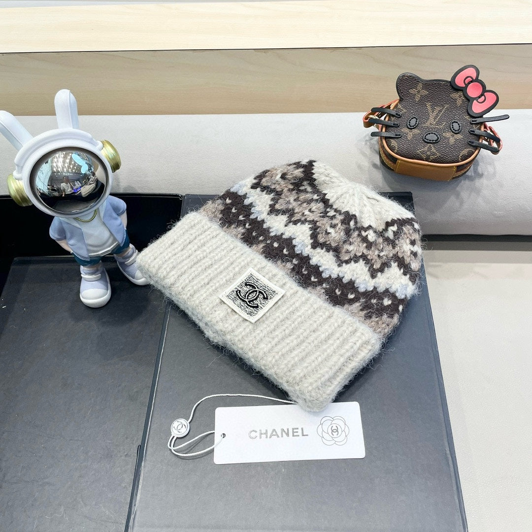 KNIT BEANIE HAT WHITE MIX BROWN 428242