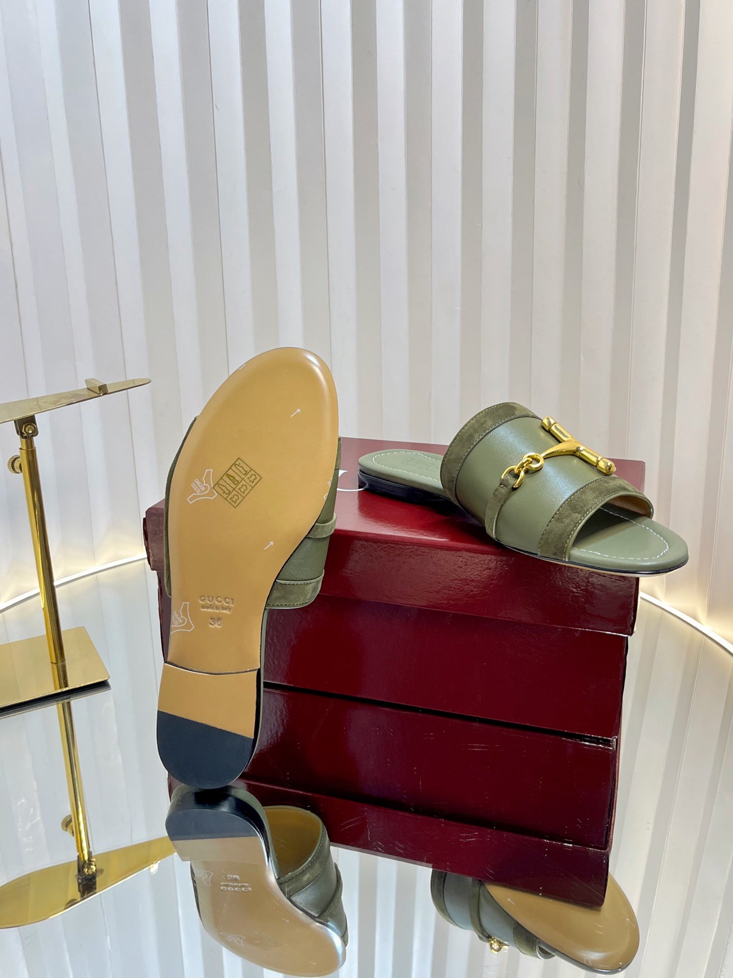 GC 25 Horsebit Sandals 10mm Dark Green Suede Sheepskin 294651