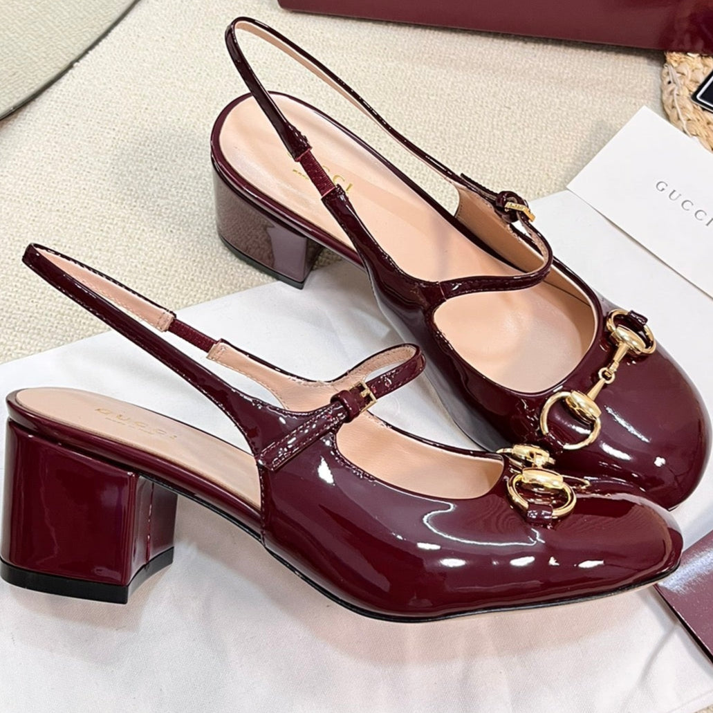 GC Horsebit Slingback 60mm Rosso Ancora red Patent Leather 294589