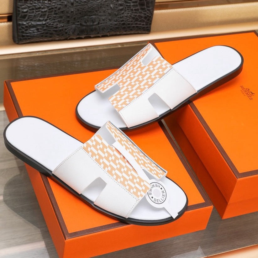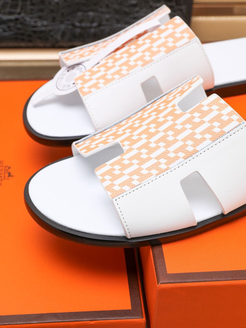 HM IZMIR SANDAL WHITE AND TANGERINE LAMBSKIN