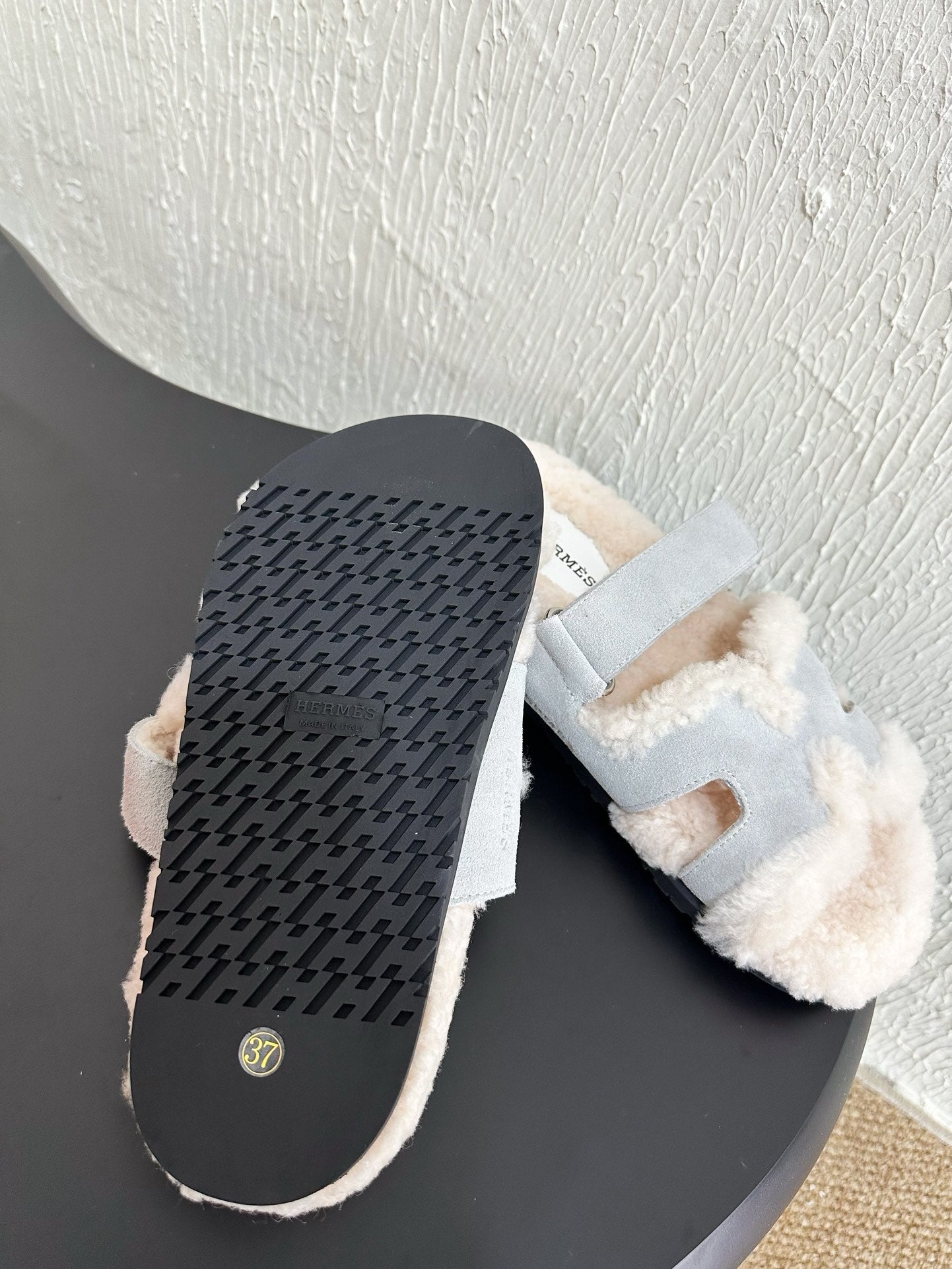 HM Chypre Sandal In Light Grey Blue Mix White Suede And Fleece Lining 961137