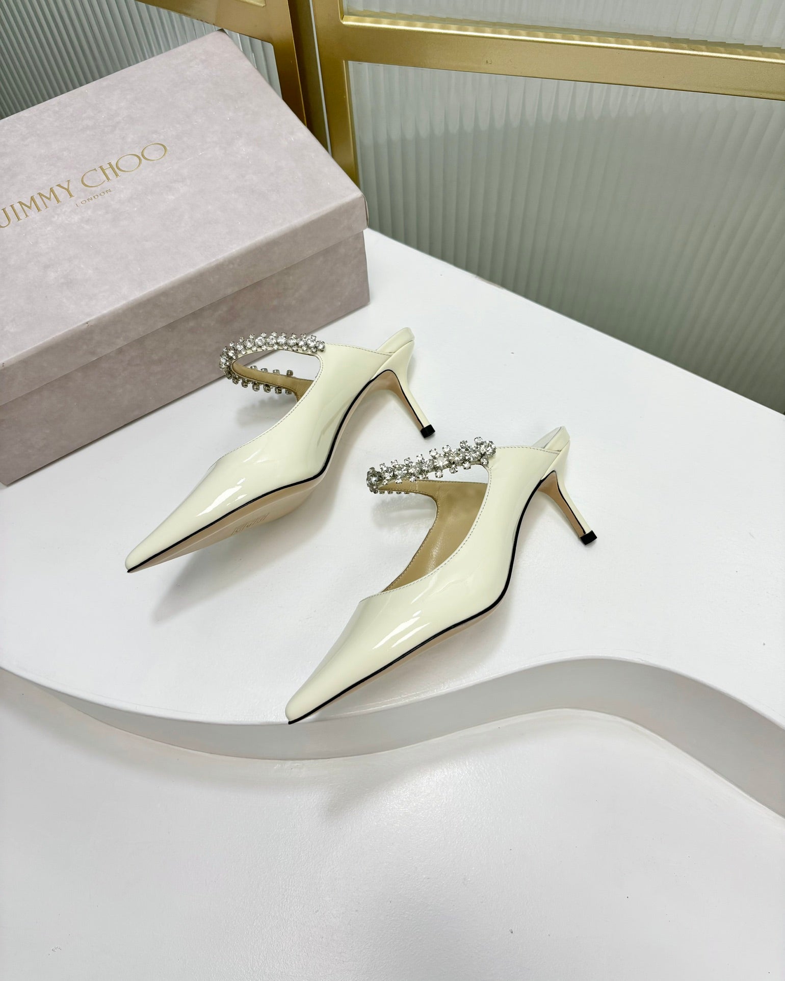 Jimmy Bing 65mm In White Glossy Cowhide Mules 587760
