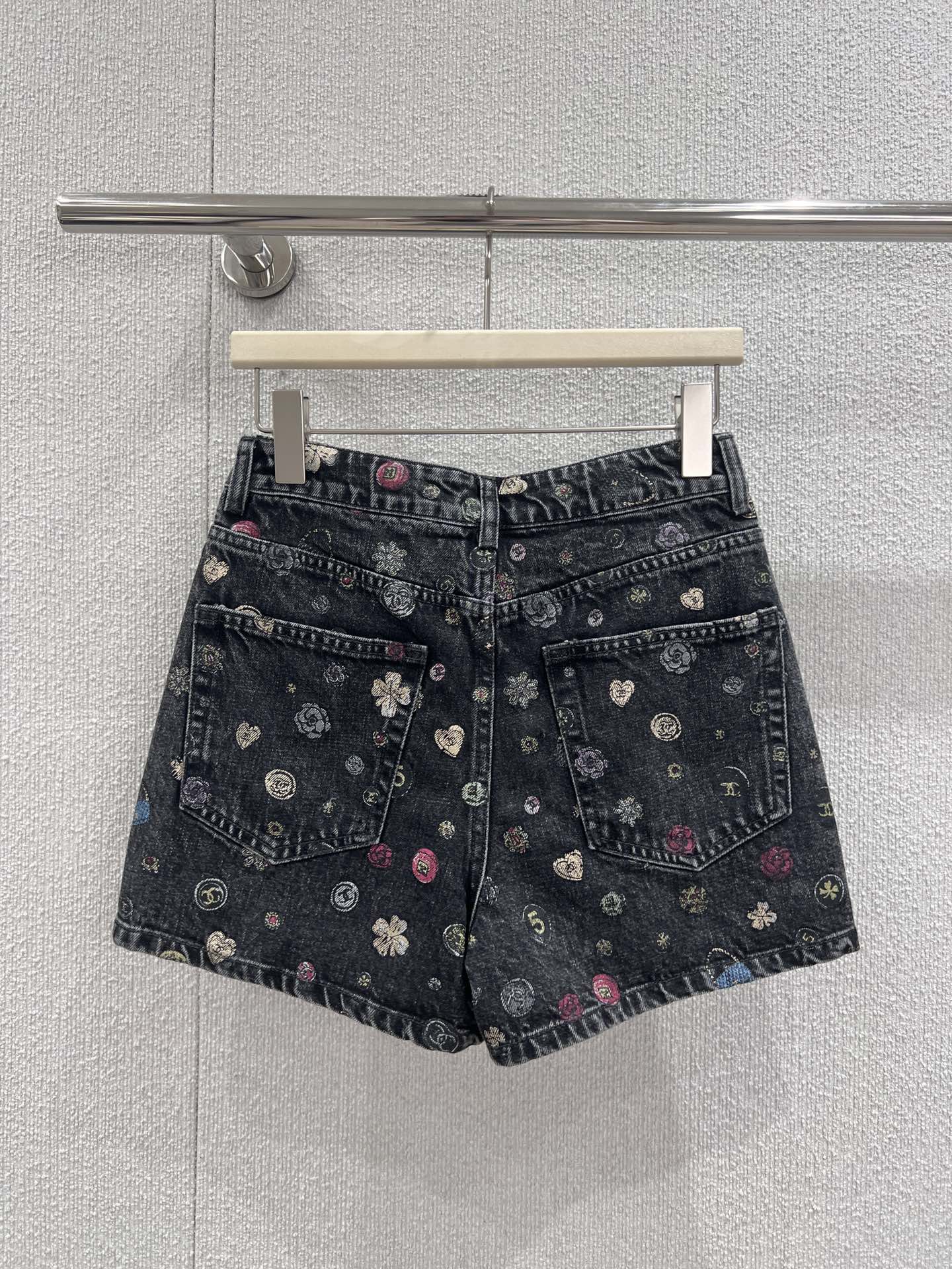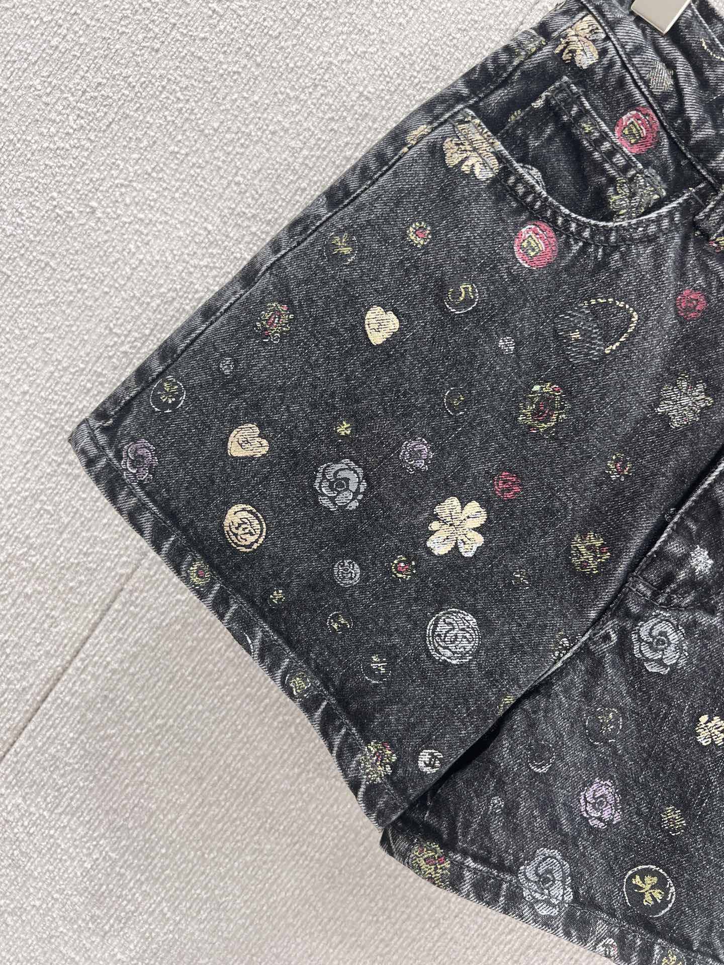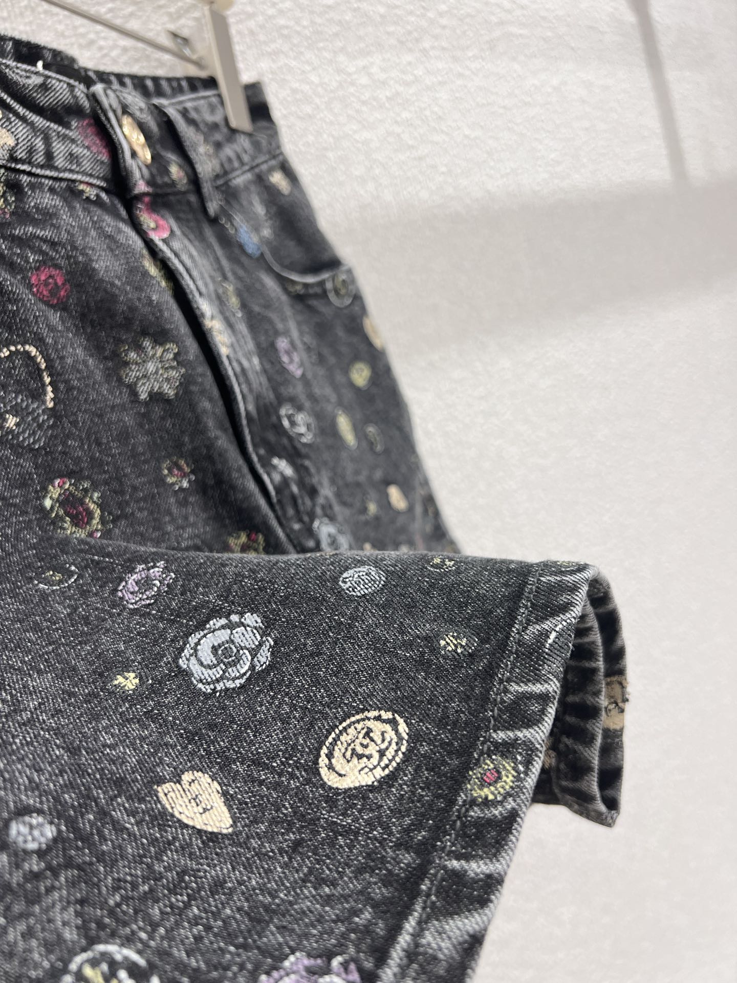 CC 25 Flower Jean Shorts Dark Gray Cotton