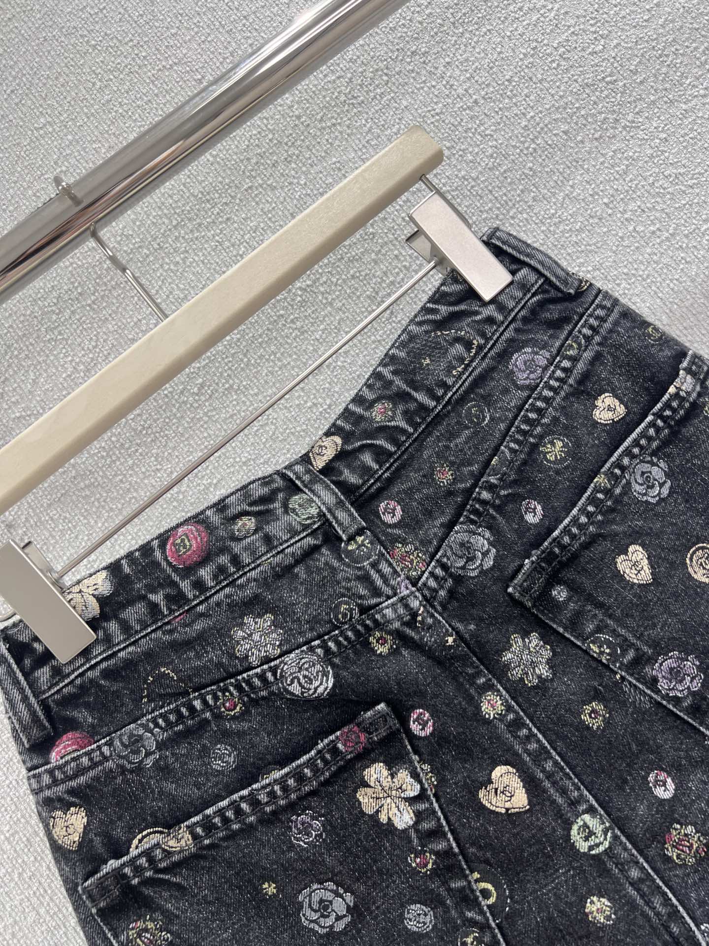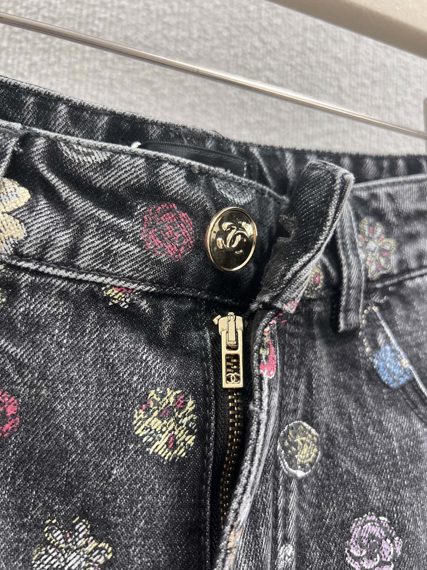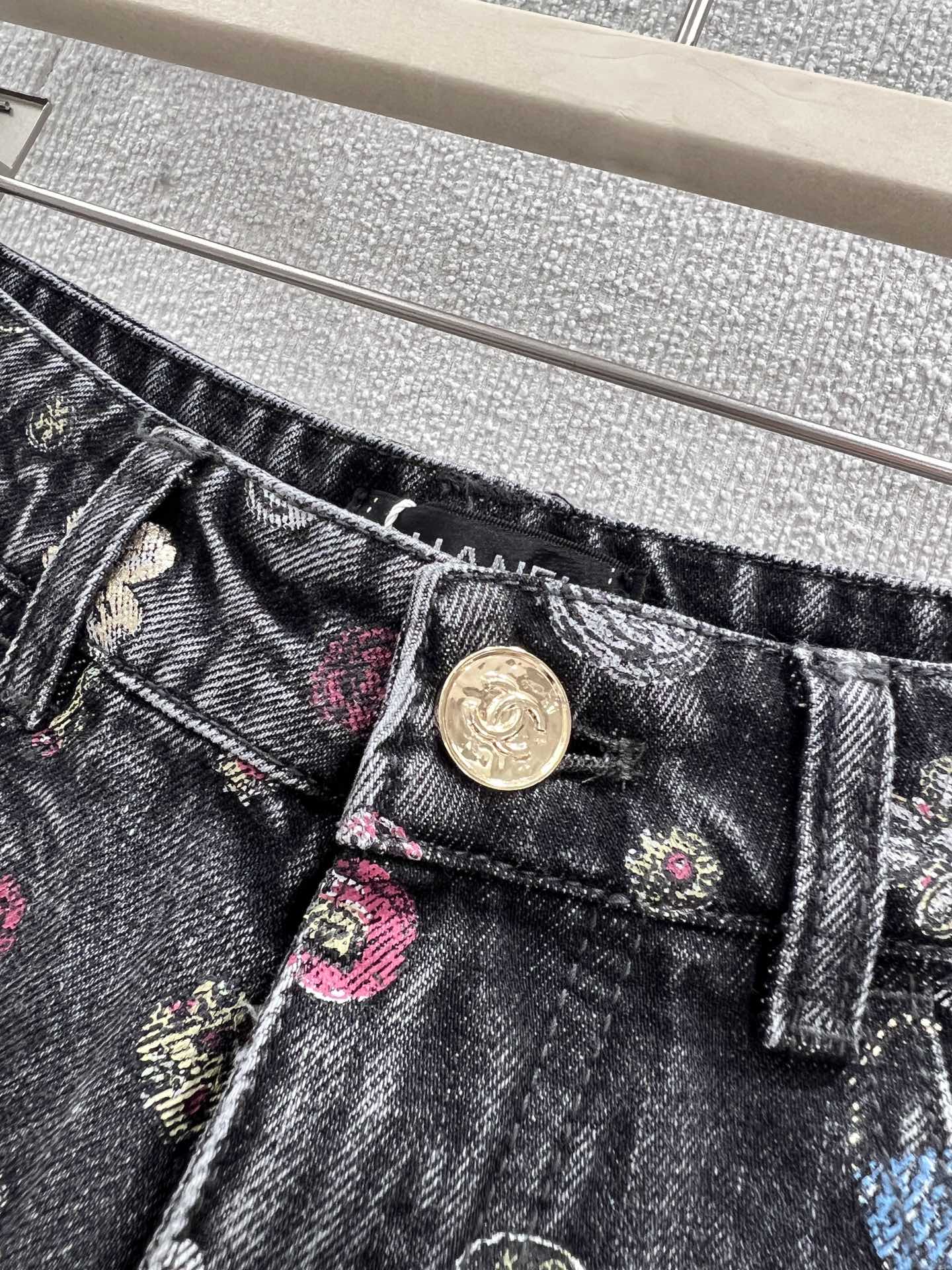 CC 25 Flower Jean Shorts Dark Gray Cotton