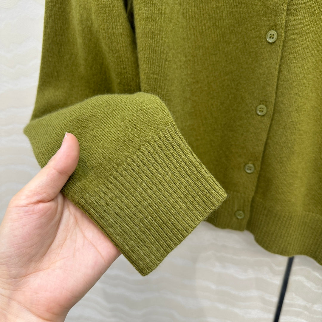 Miumiu Detachable Shirt Cardigan Olive Green Collar and Cashmere