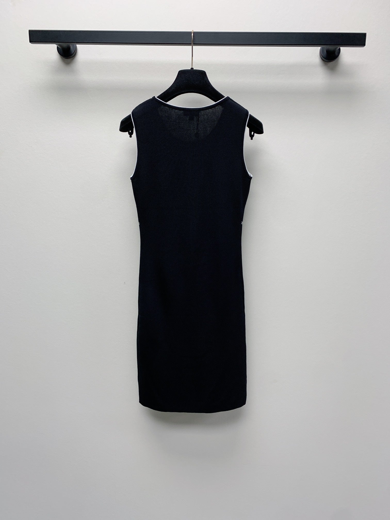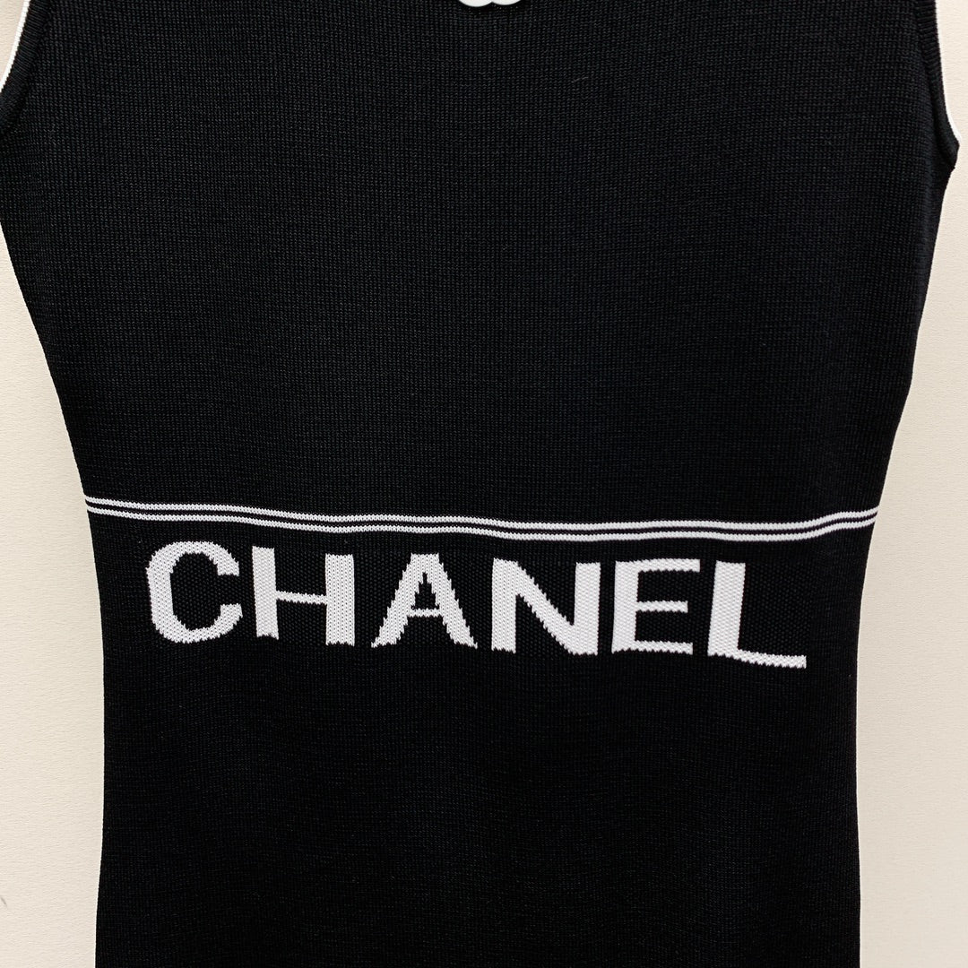 CC 25 Round Neck Knitted Embroidered Logo Vest Dress in Black 277585