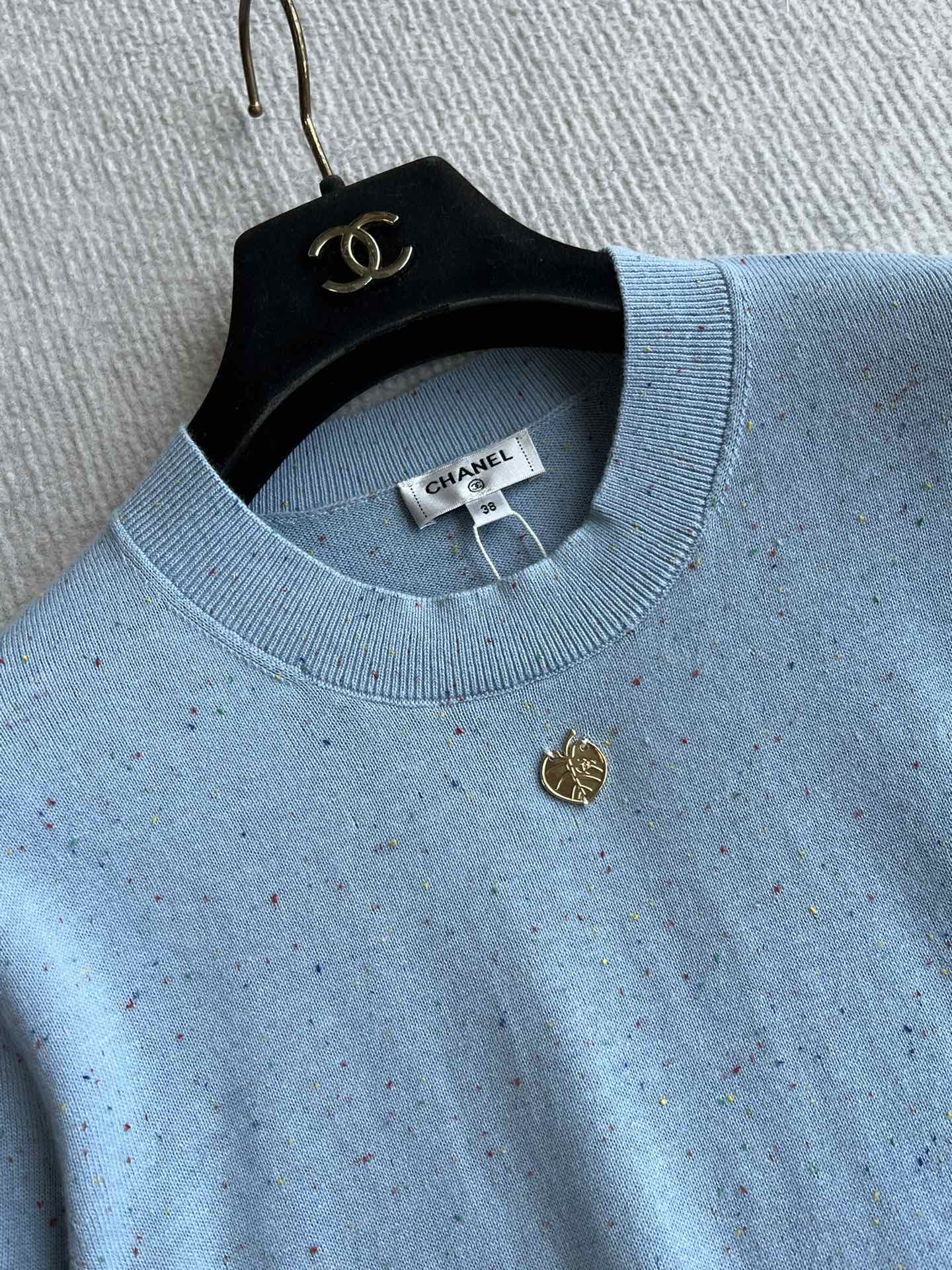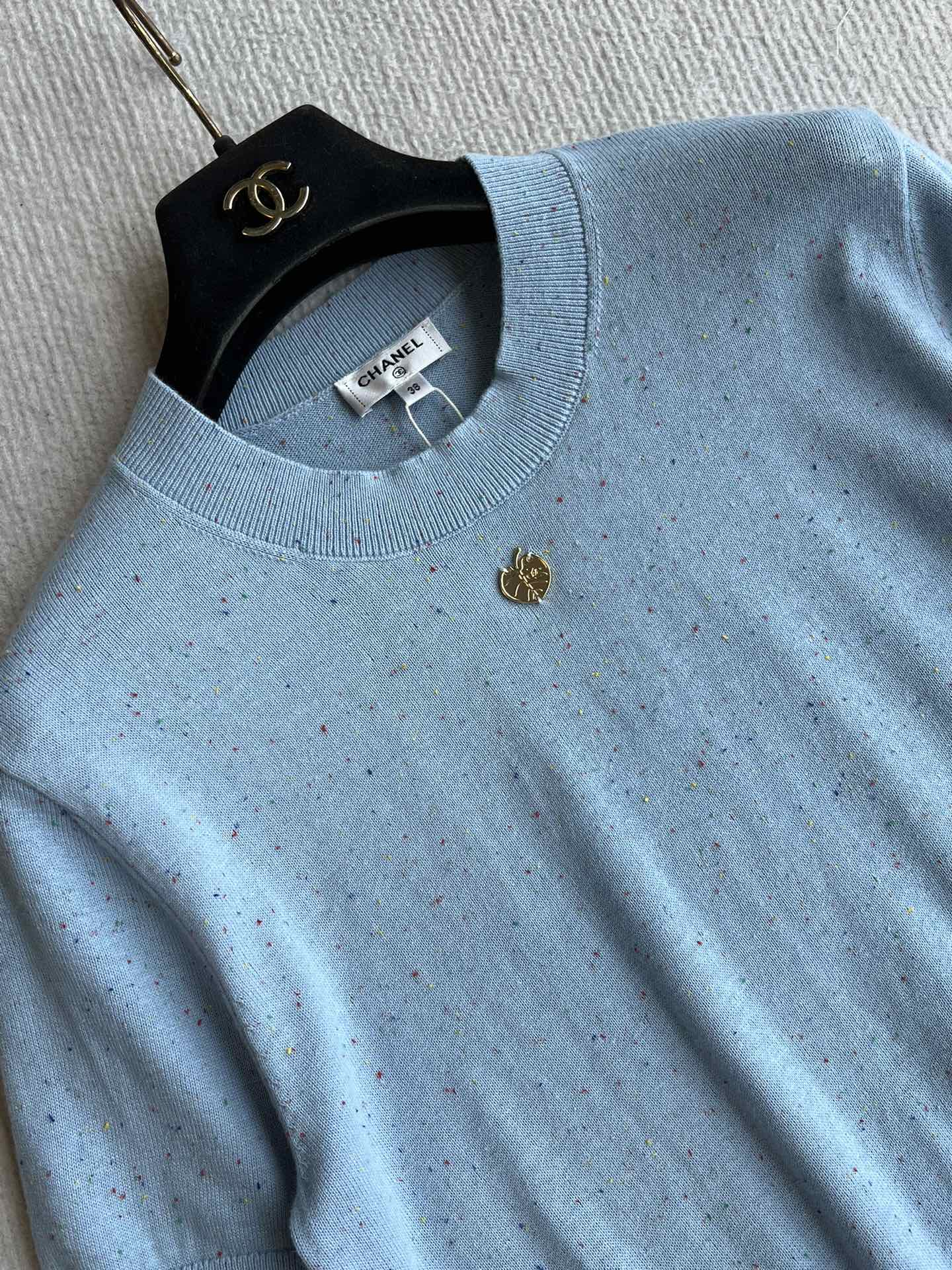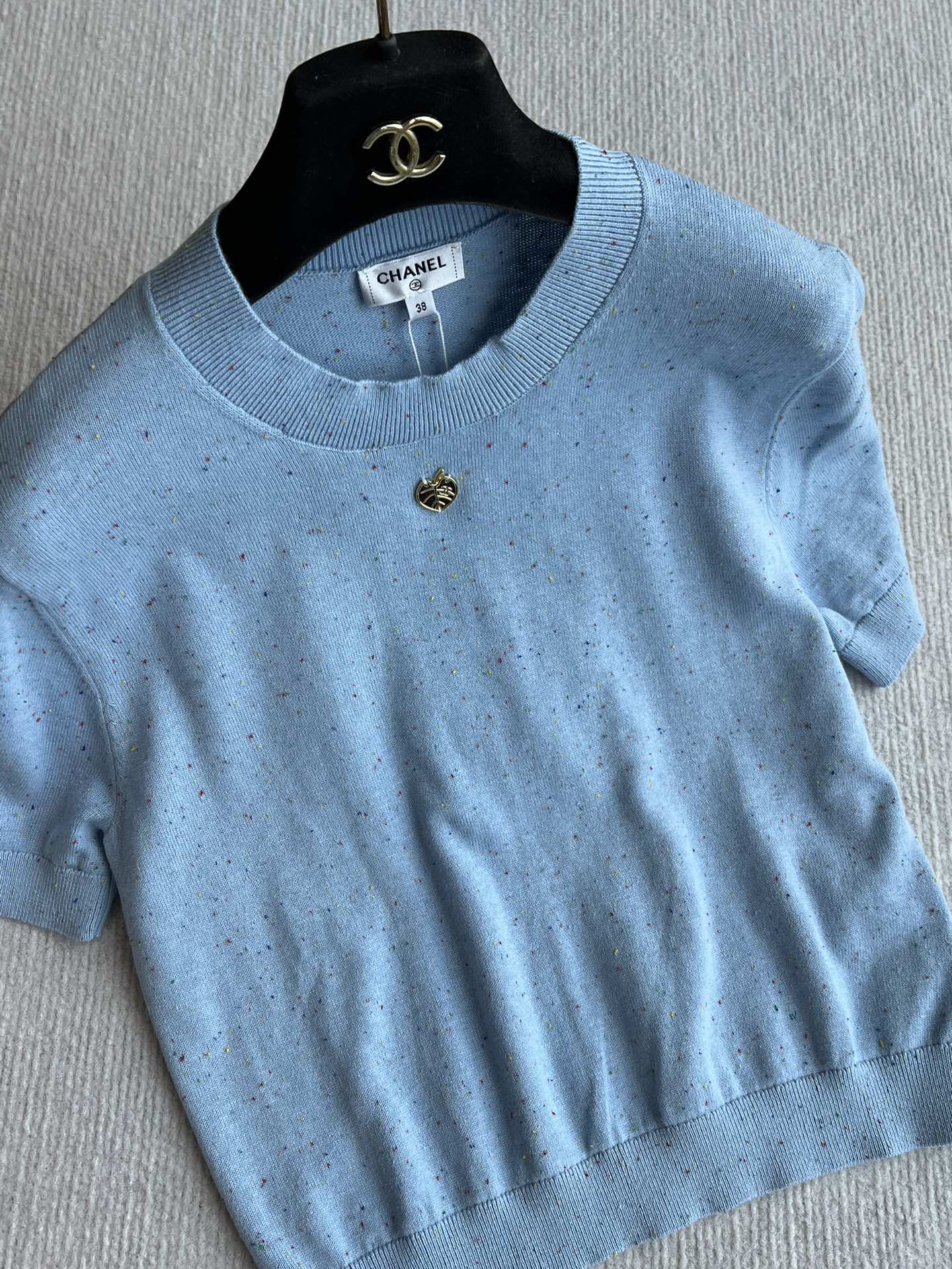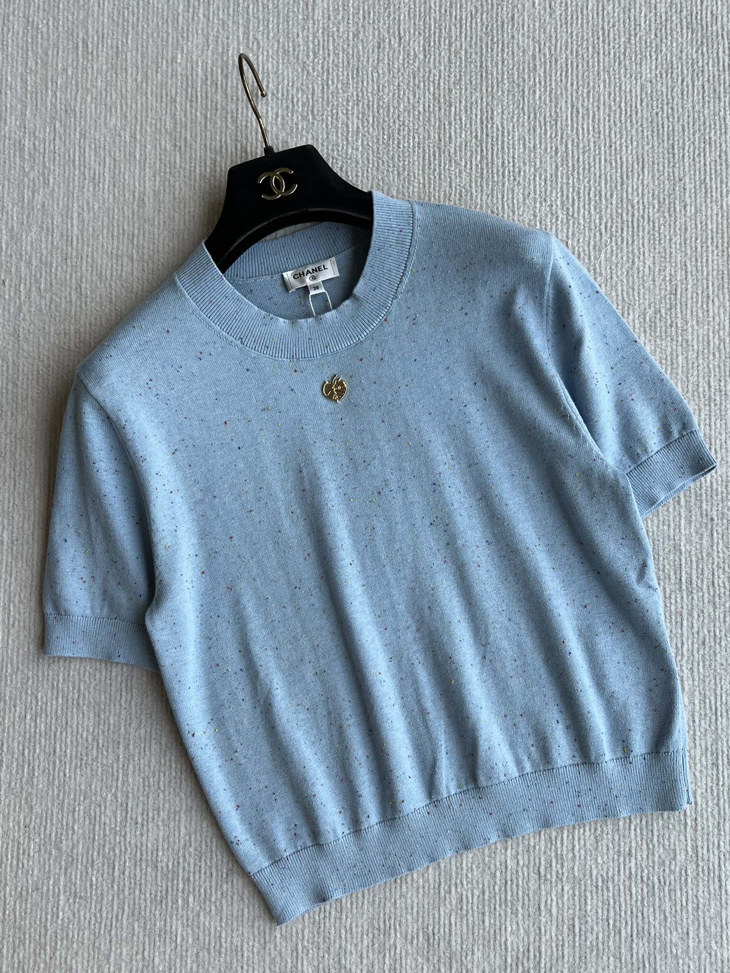 CC 25A Short-Sleeves Top Baby Blue Cashmere