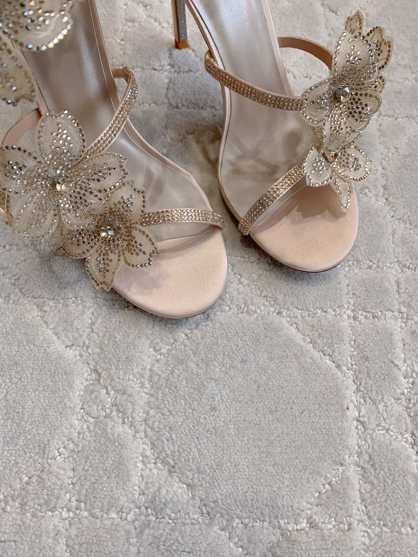 RC Flower Sandals Beige Sheepskin Rhinestones 328467