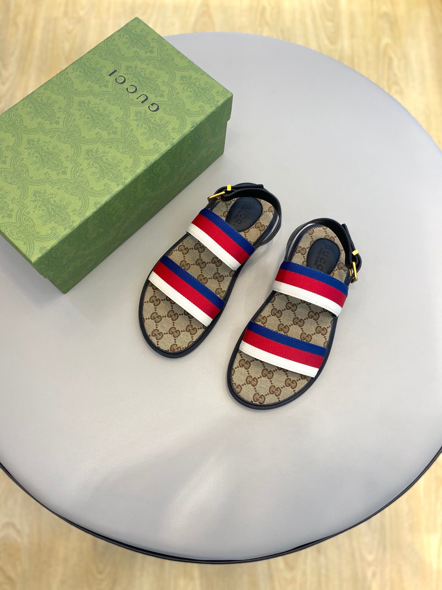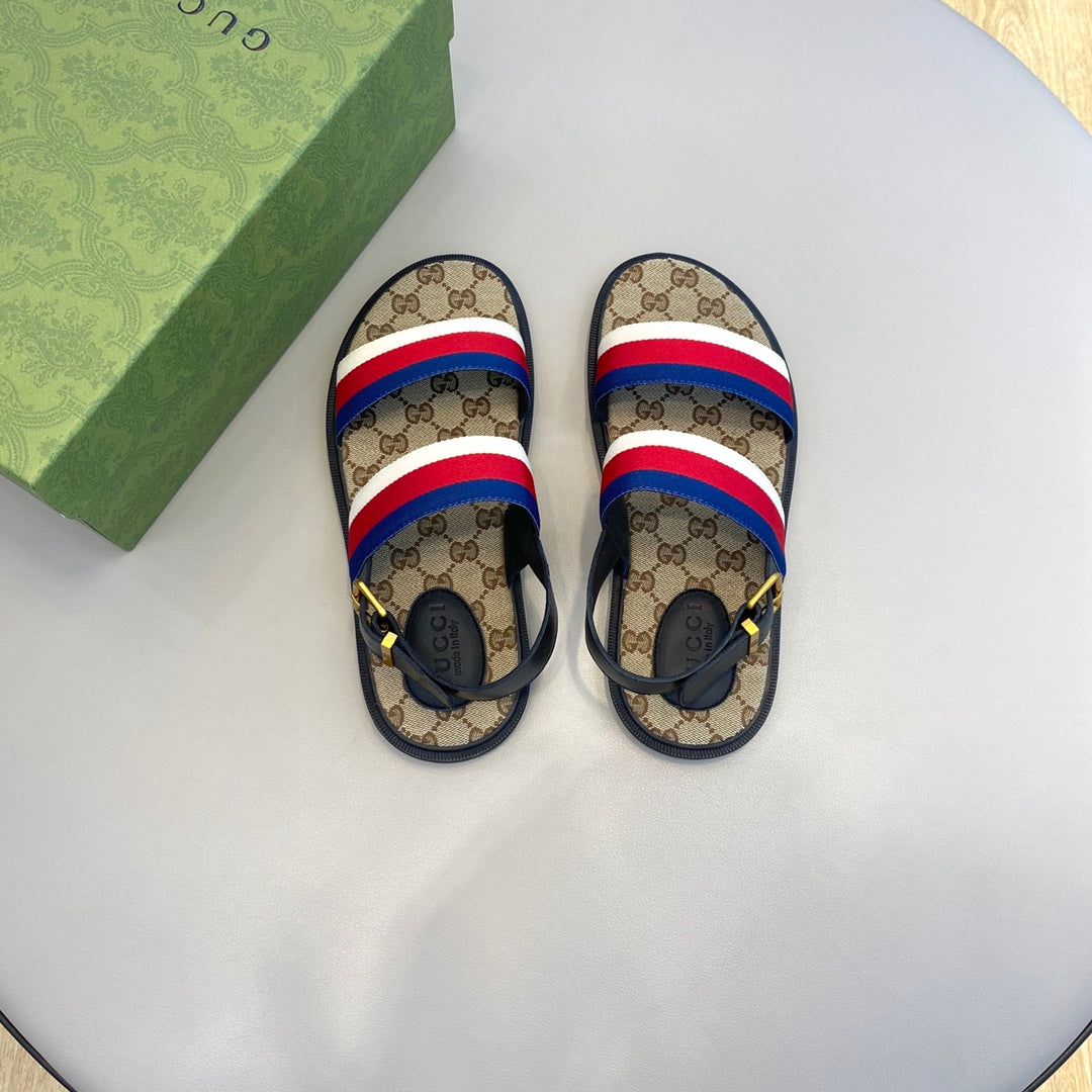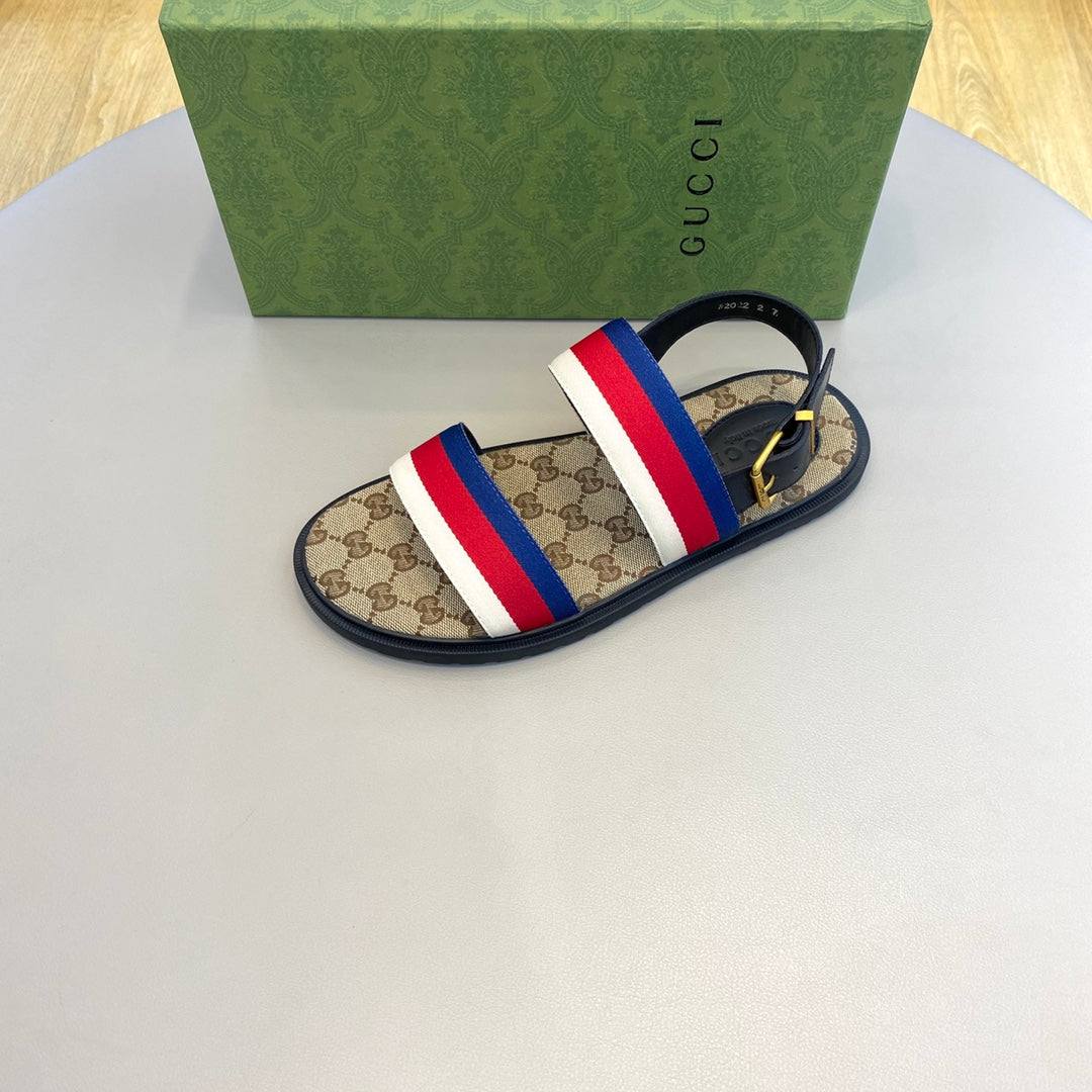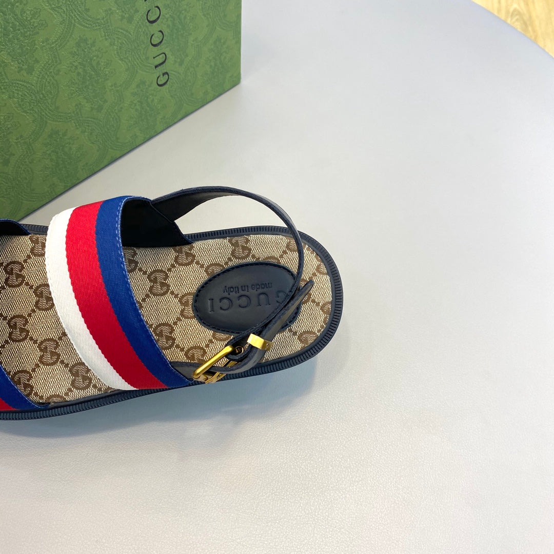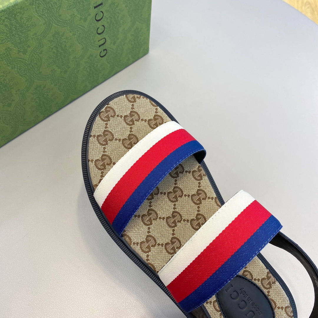 GG Men's Web Sandals Brown Canvas 558896