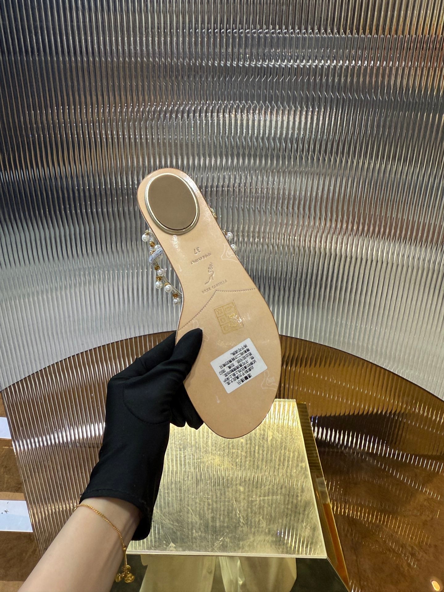 RC 25C Thong Diamond Flat Sandals White Silk Rhinestone 275772
