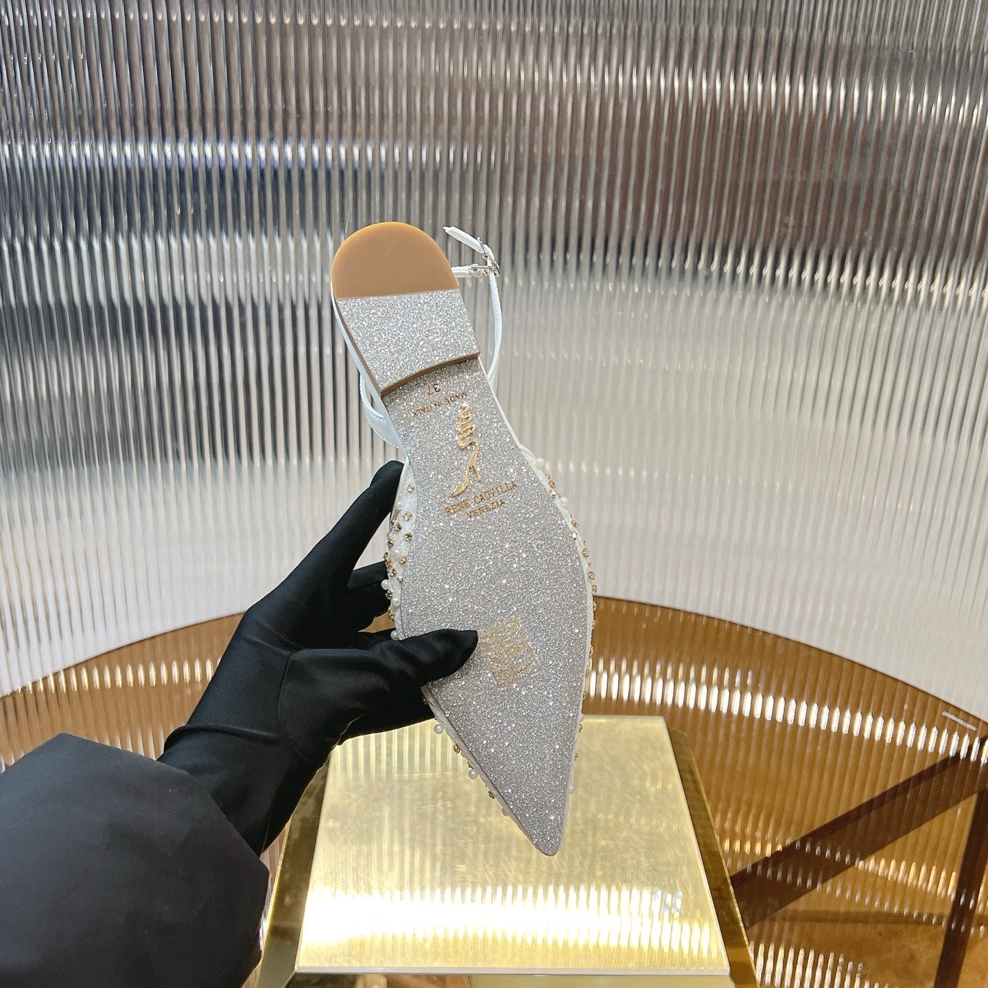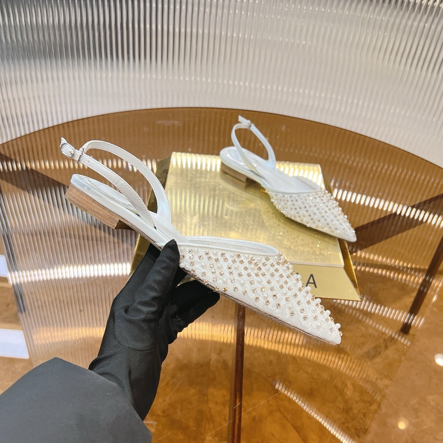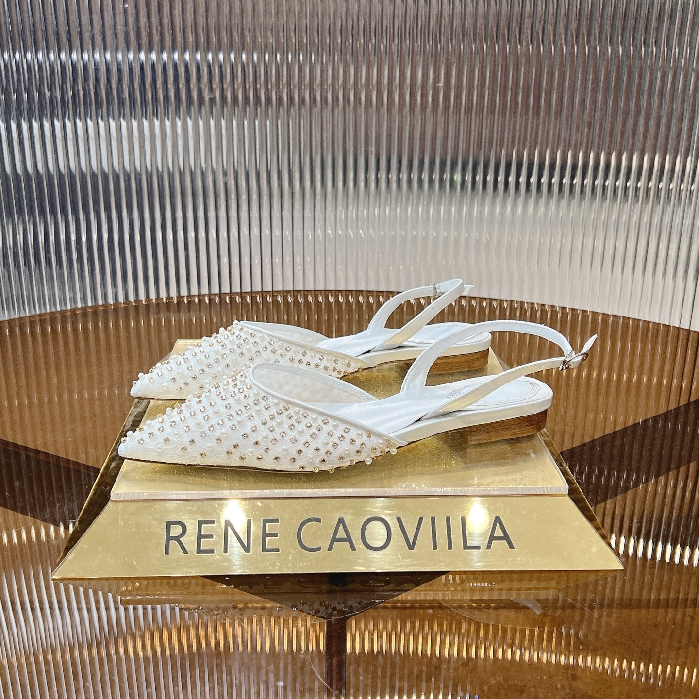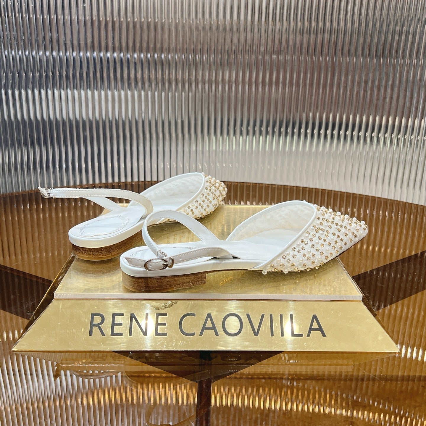 RC Slingback 1cm White Rhinestone Sheepskin 281983