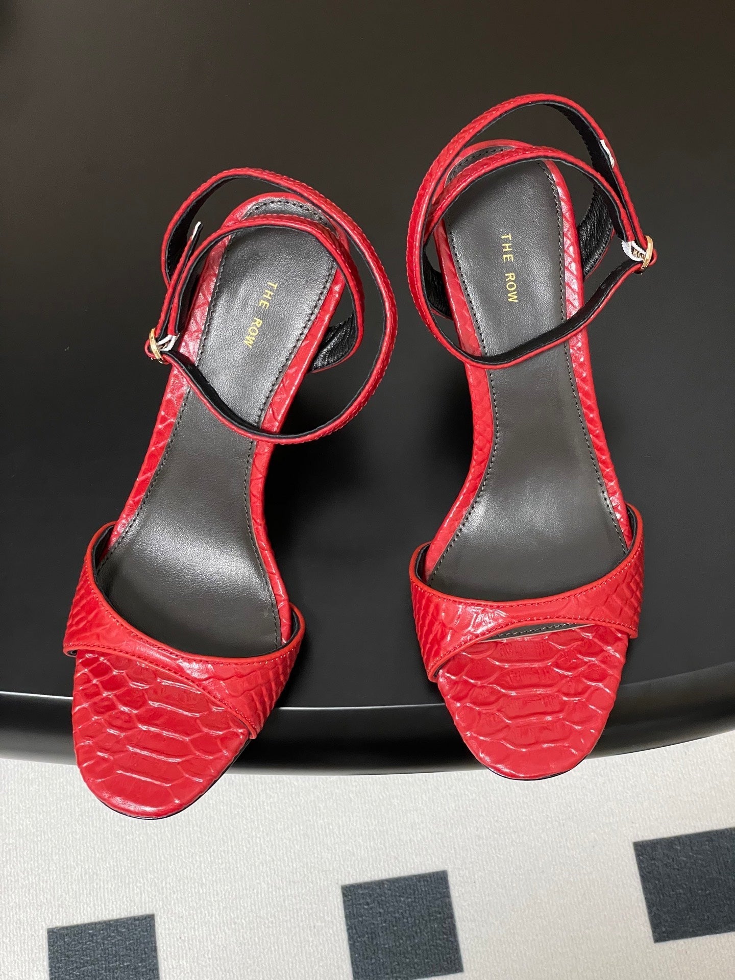 The Row 25S Strap High Heel Sandals 85mm Red Snake Pattern Cowhide 286187
