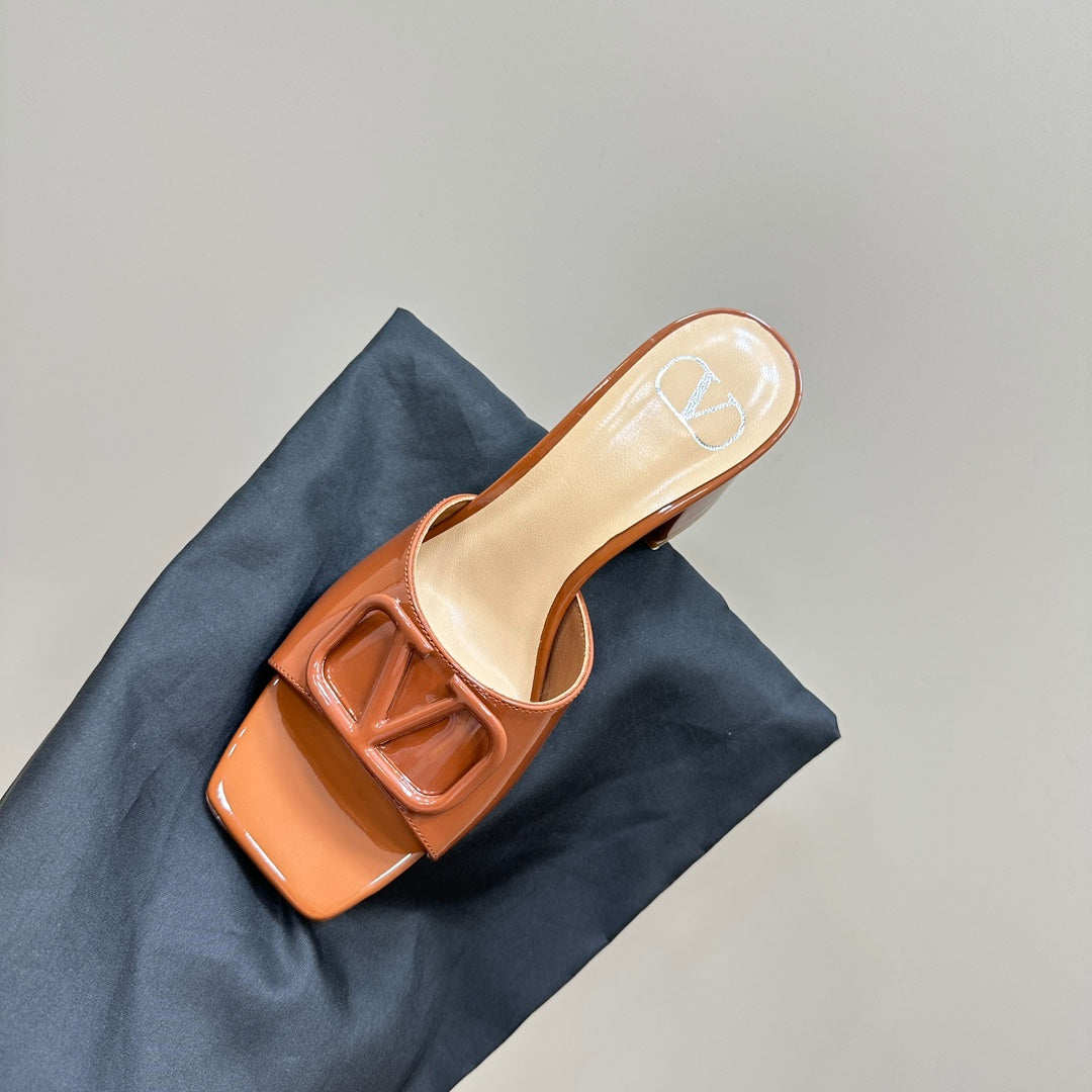 Vogo Signature High Shine Open Toe Sandals In Brown Glossy Lambskin 839825