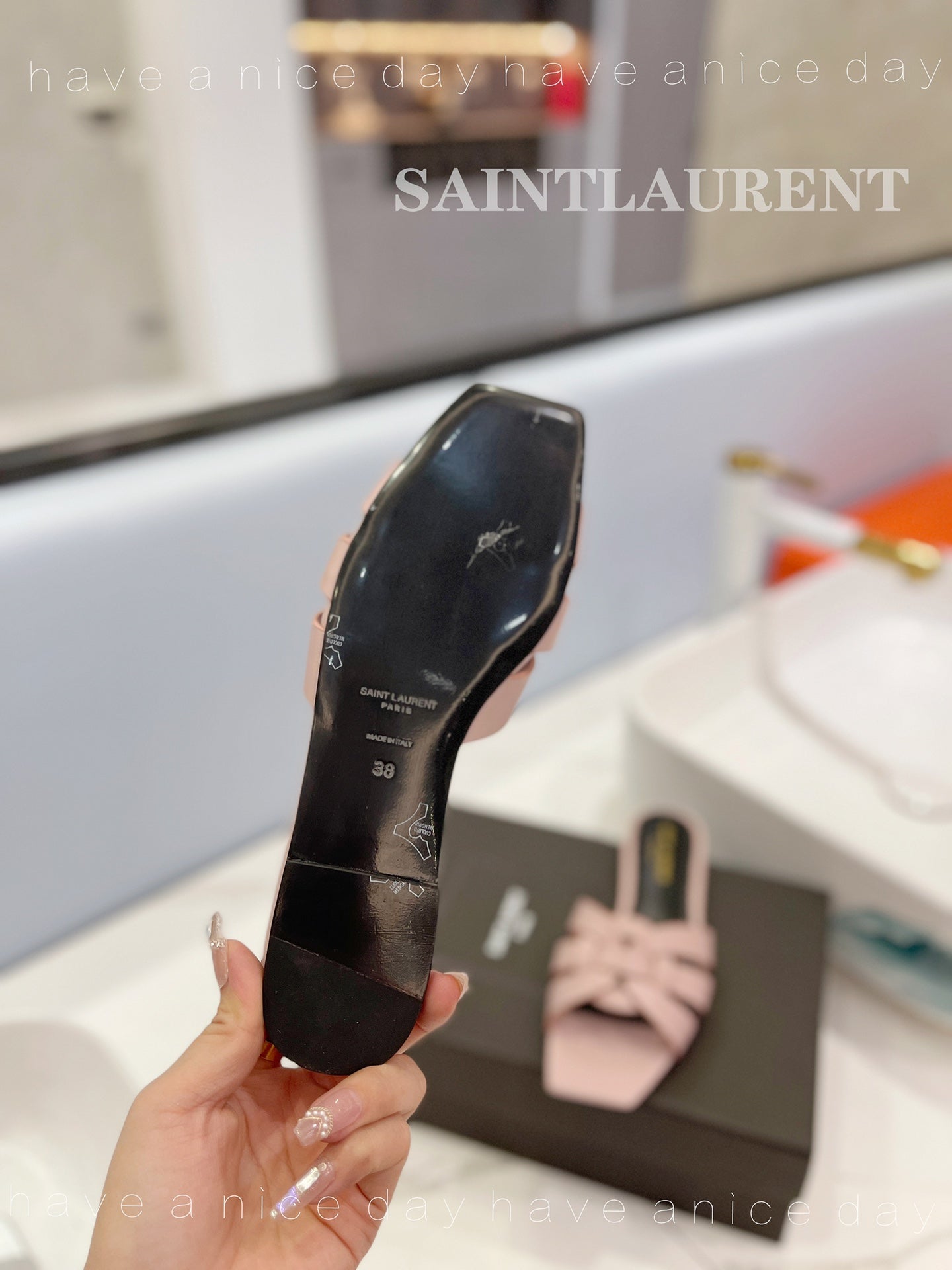 SL TRIBUTE SLIPPERS PINK NUDE CALFSKIN