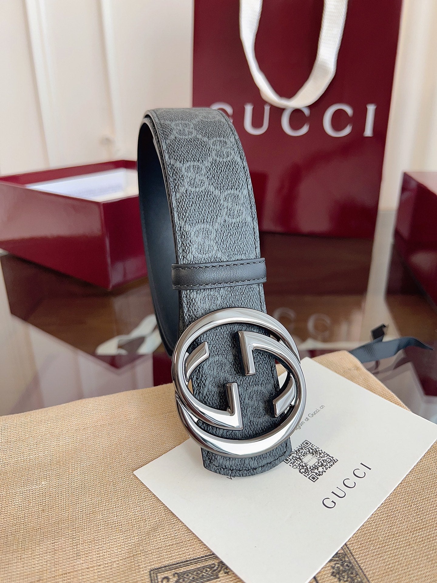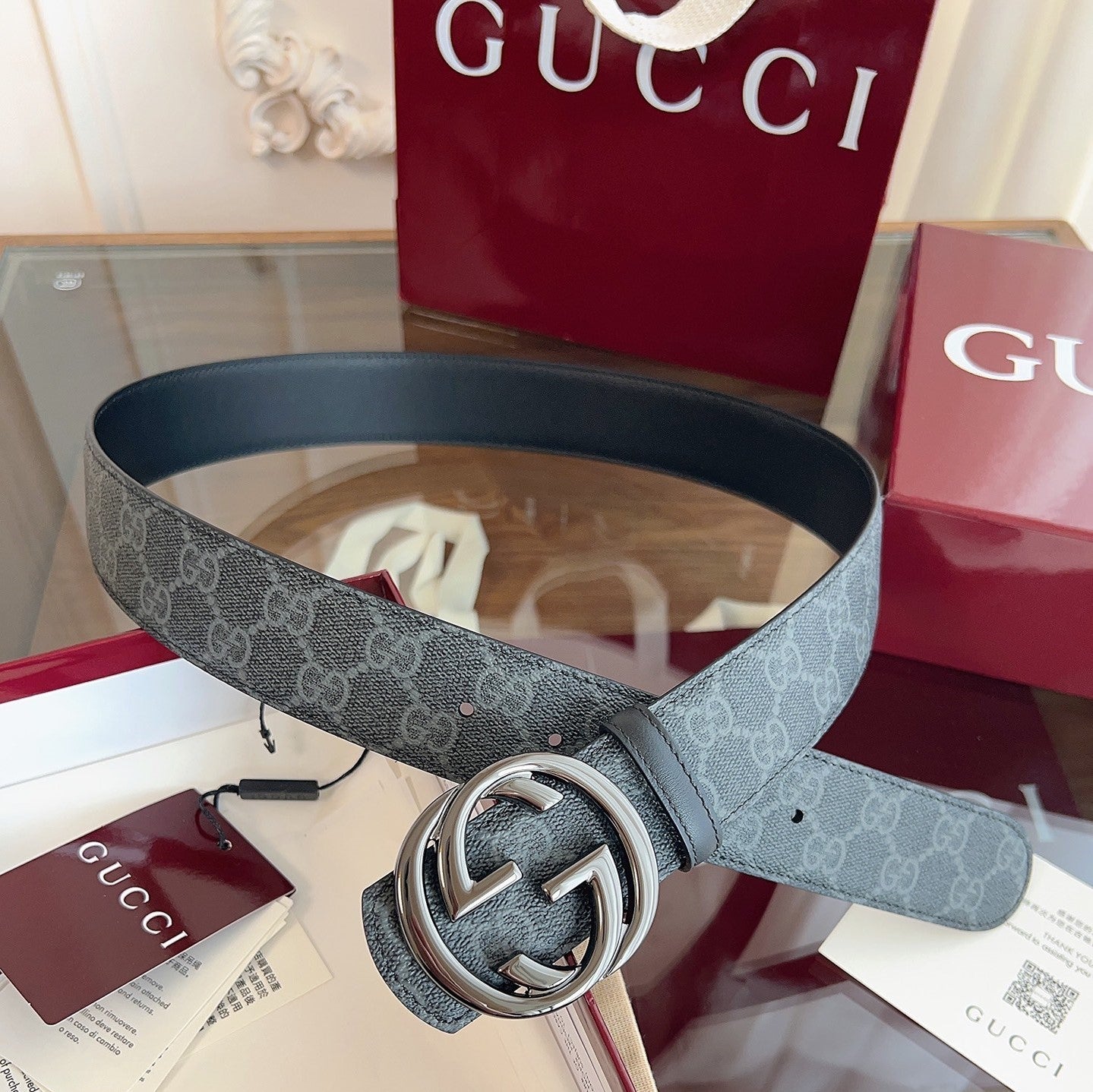 Gucci Supreme Belt Blunt Copper Buckle 40mm Slate Gray Leather Canvas