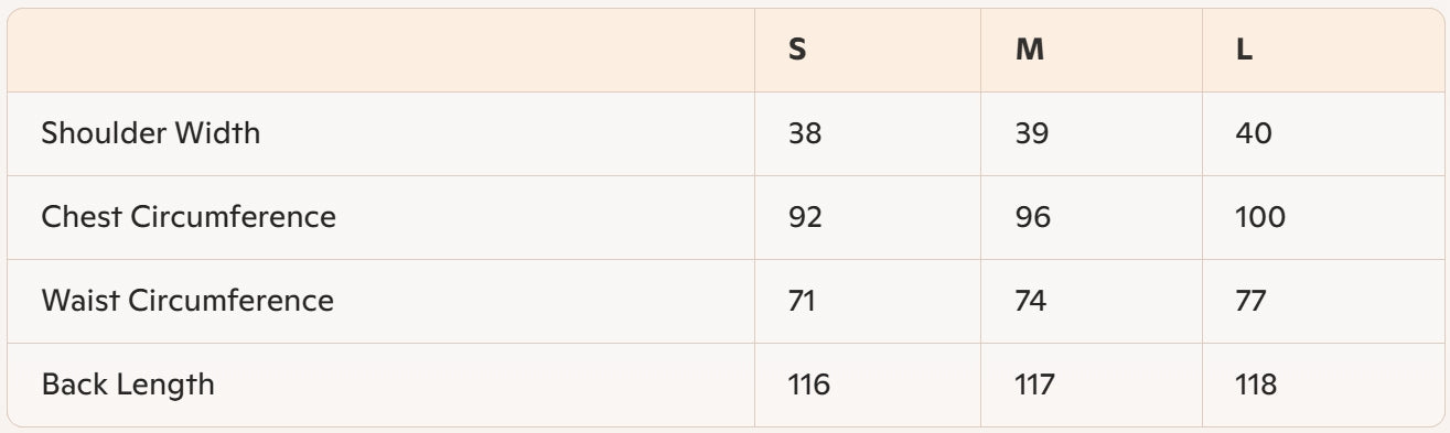 - Size: S, M, L