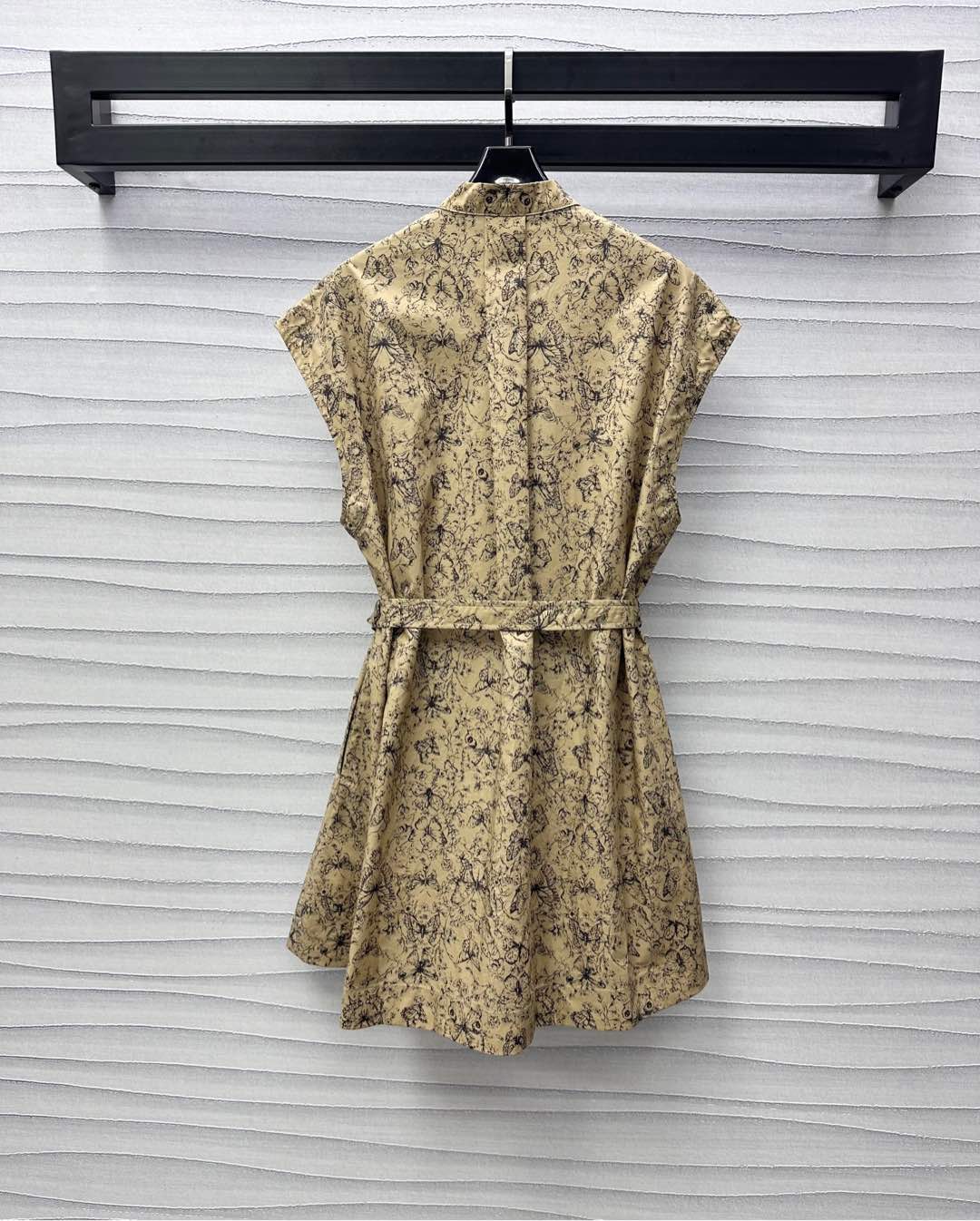 CD Short Belted Shirtdress Beige Cotton Gabardine with Black Motif