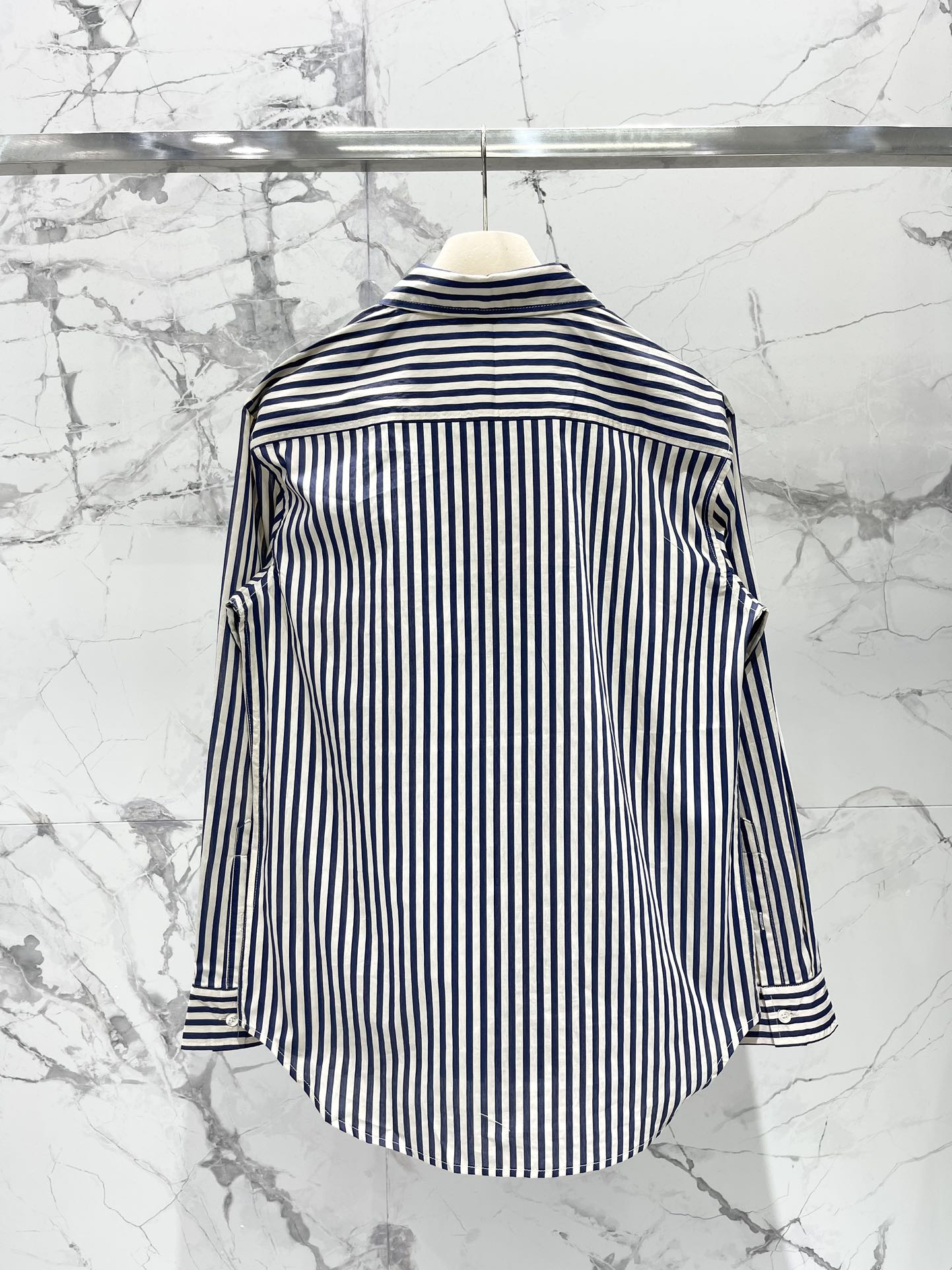 Miu Miu Striped Letter Embroidered Shirt Blue White Cotton