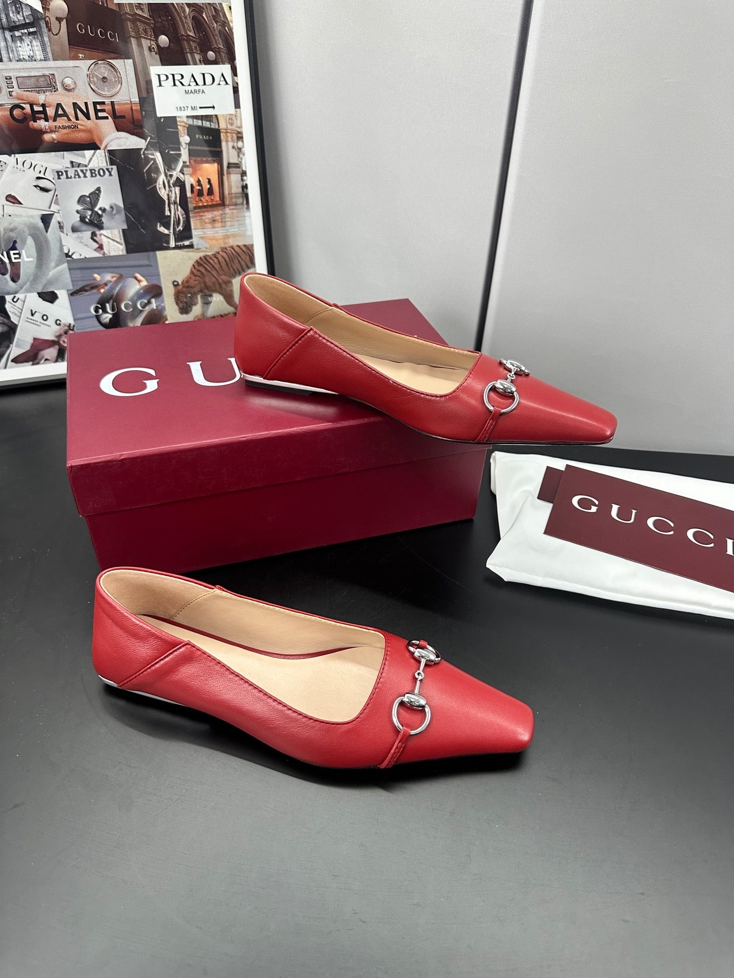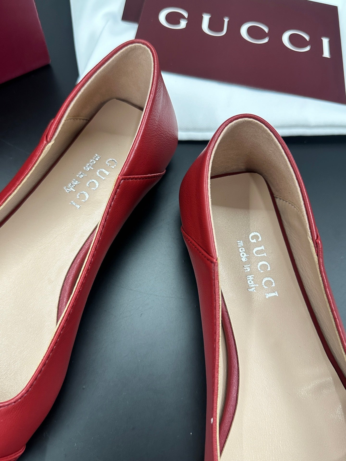 Gucci 26 Vittoria Horsebit Ballet Flats Red in Leather 688310