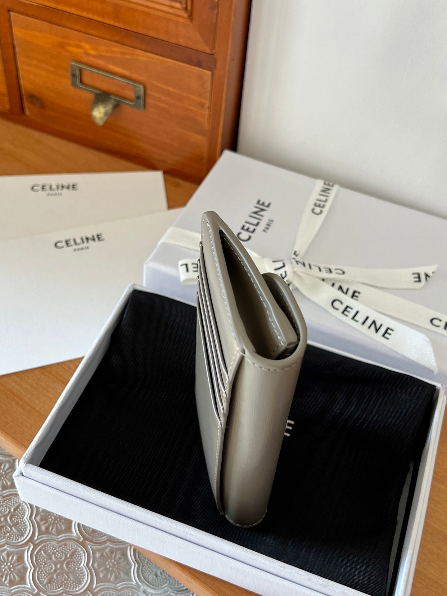 TRIOMPHE 10 Flap Wallet Card Holder 13cm Modern Taupe Shiny Cafskin